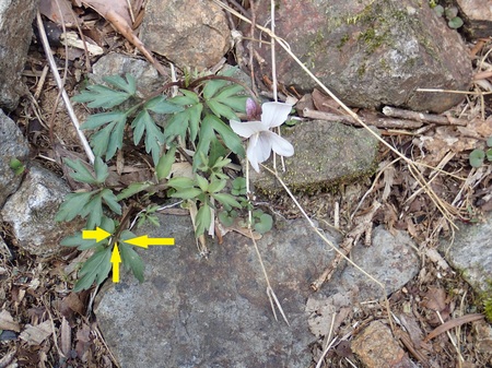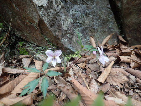 写真の真ん中あたり、小さな花を咲かせているのがフモトスミレです!
