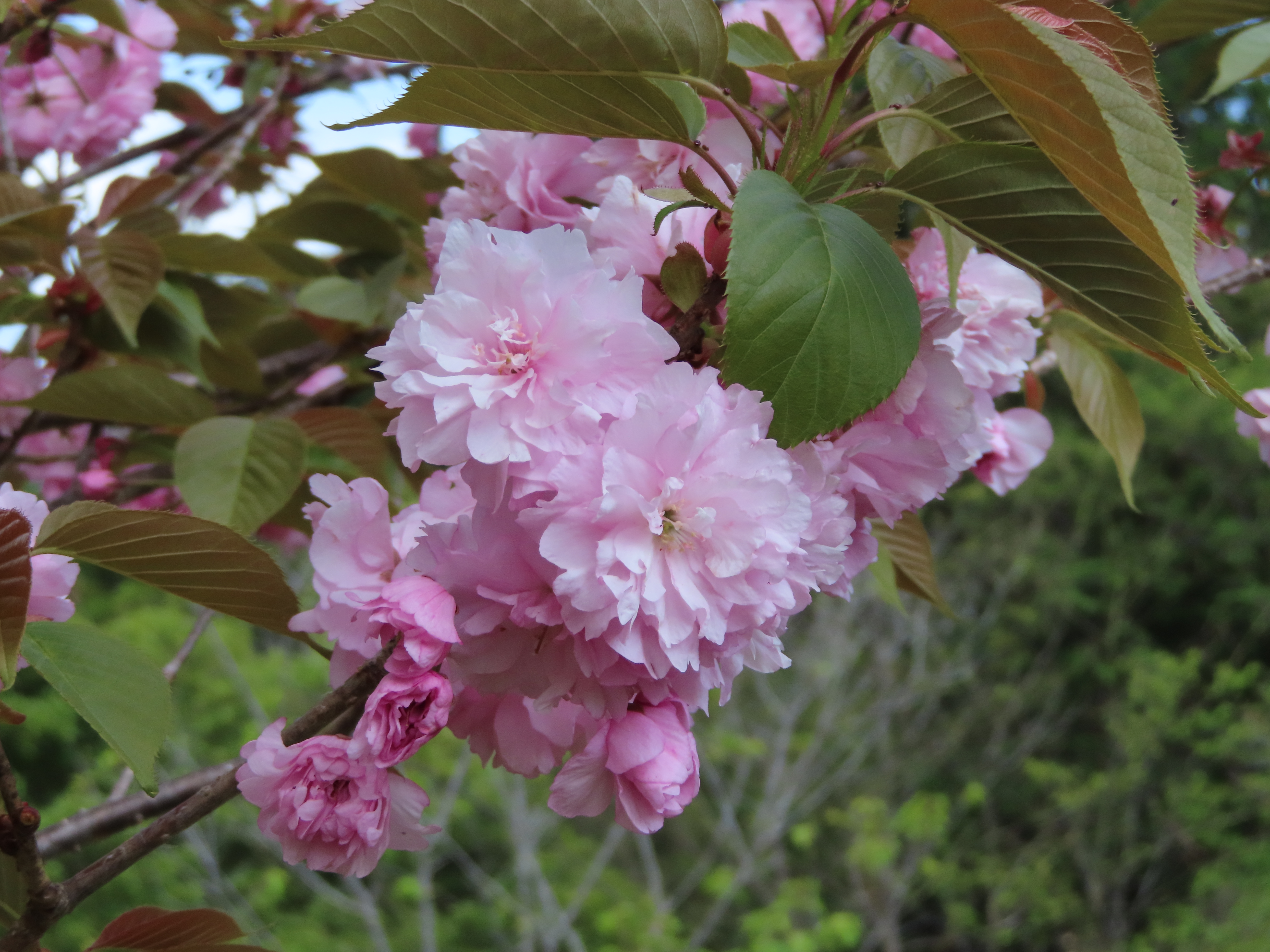 これは、創造の森(横山)の桜園のカンザン。ウコンとともに4月下旬頃に満開になるサクラです。この桜園には様々な種類のサクラが植樹されていますが、それぞれに開花する時期も違えば、花の形、色、咲き方も違います。様々な種類を比較しながら観察することができます。