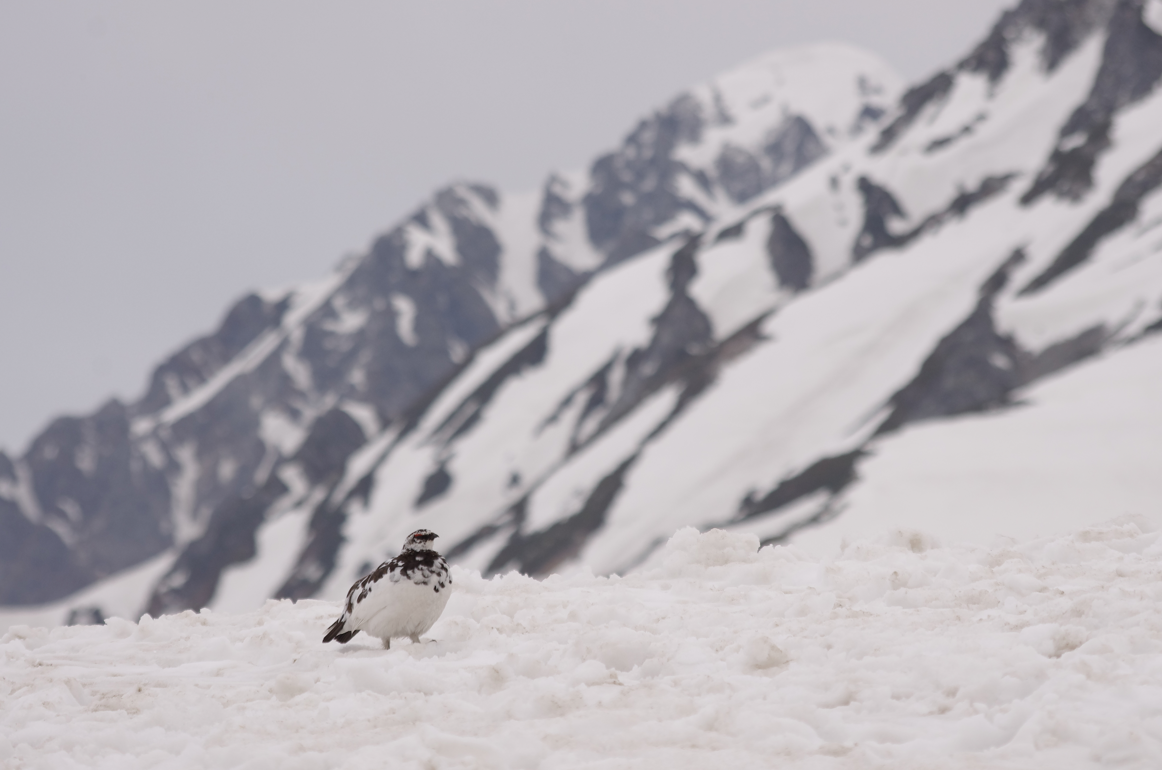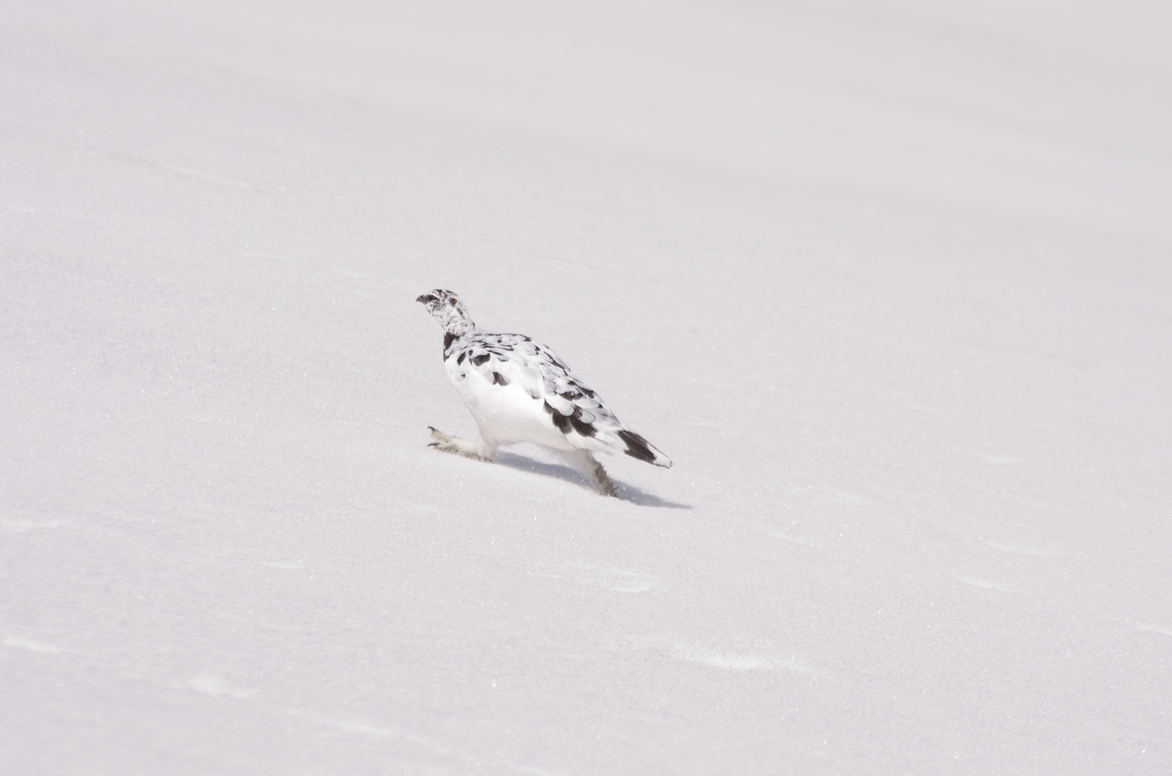 春から秋にかけて立山ではライチョウ以外にも多くの鳥を見ることができるのですが、厳冬期も立山(マイホーム)に滞在している鳥は実はライチョウだけだそうです!