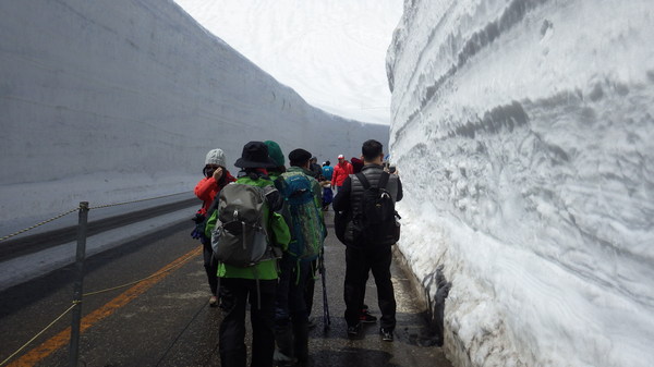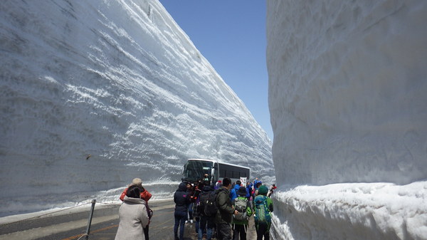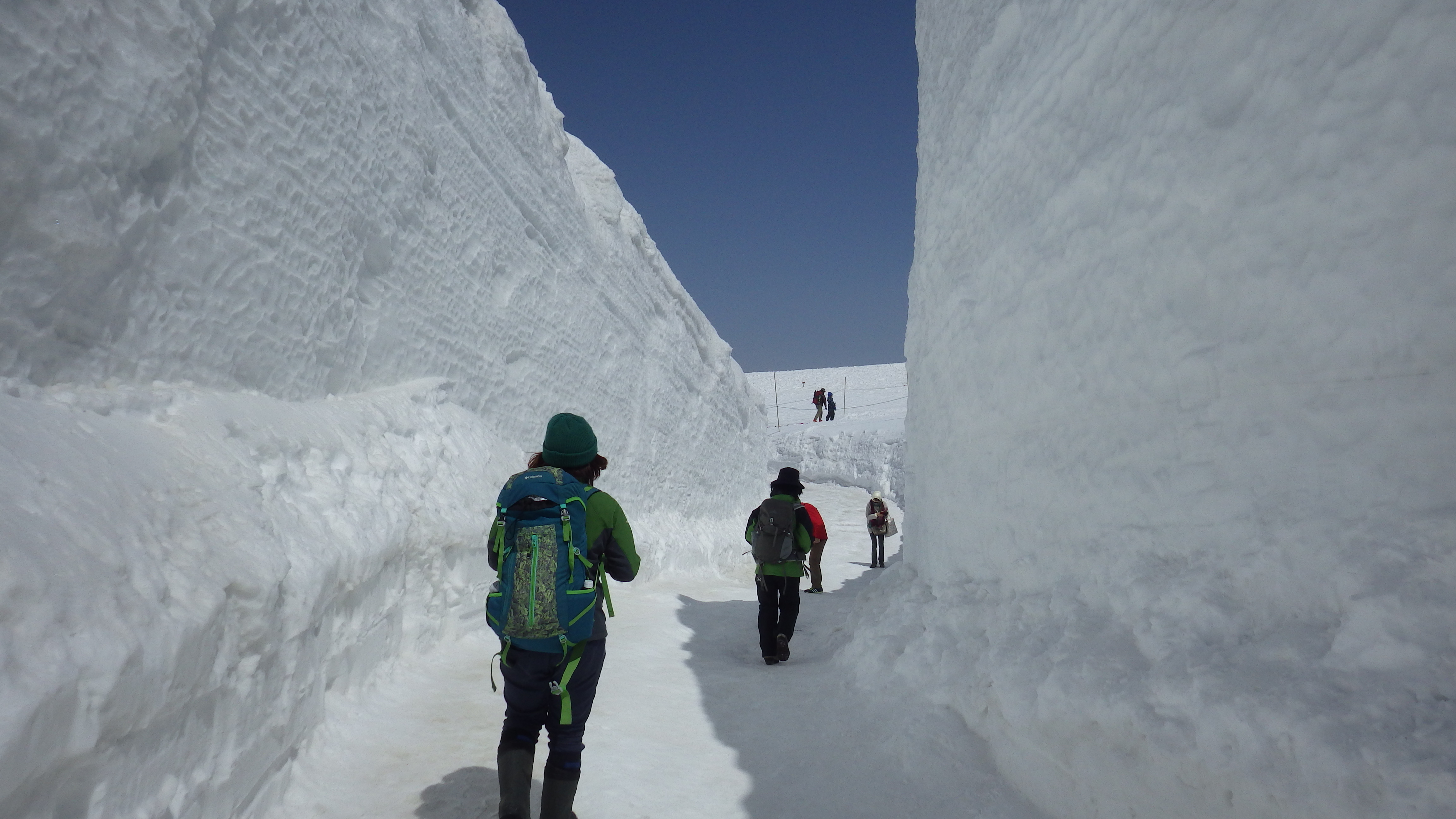 室堂ターミナルを降りてすぐの道にあるのが「雪の大谷」です。通年雪が多く残る4月中旬~6月にかけて歩いて見ることができます。(※今年は開催中止)