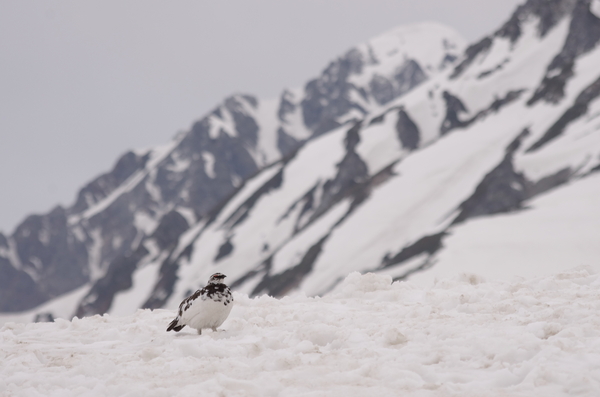 テーマは「雪の大谷とライチョウ」です。(2017年5月撮影)