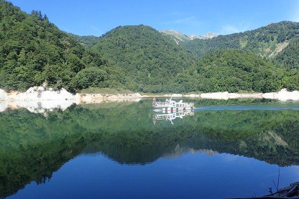 もっと黒部湖を味わいたいなら、カンパ吊り橋の近くから出ている「遊覧船ガルべ」