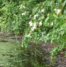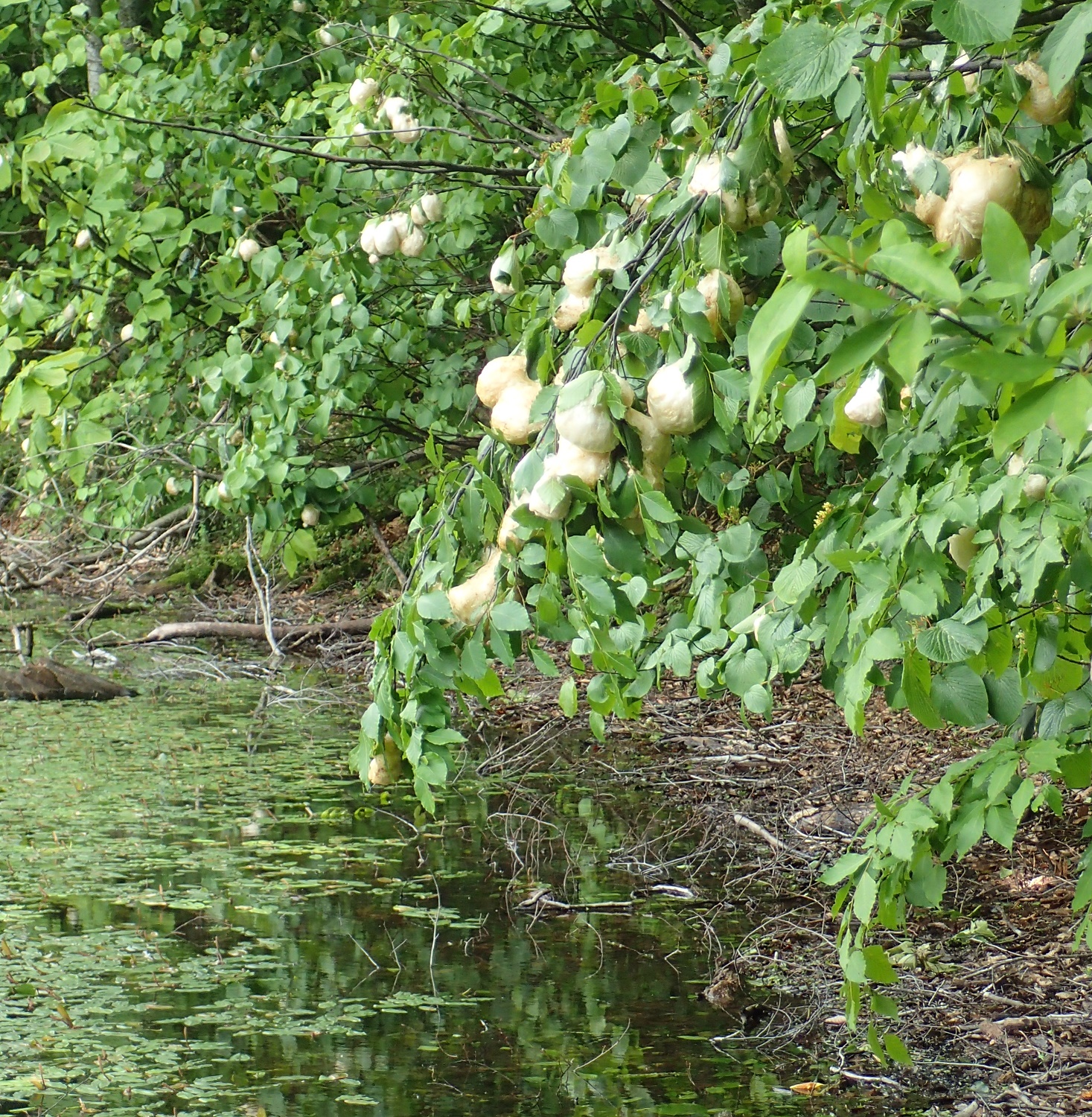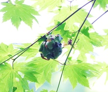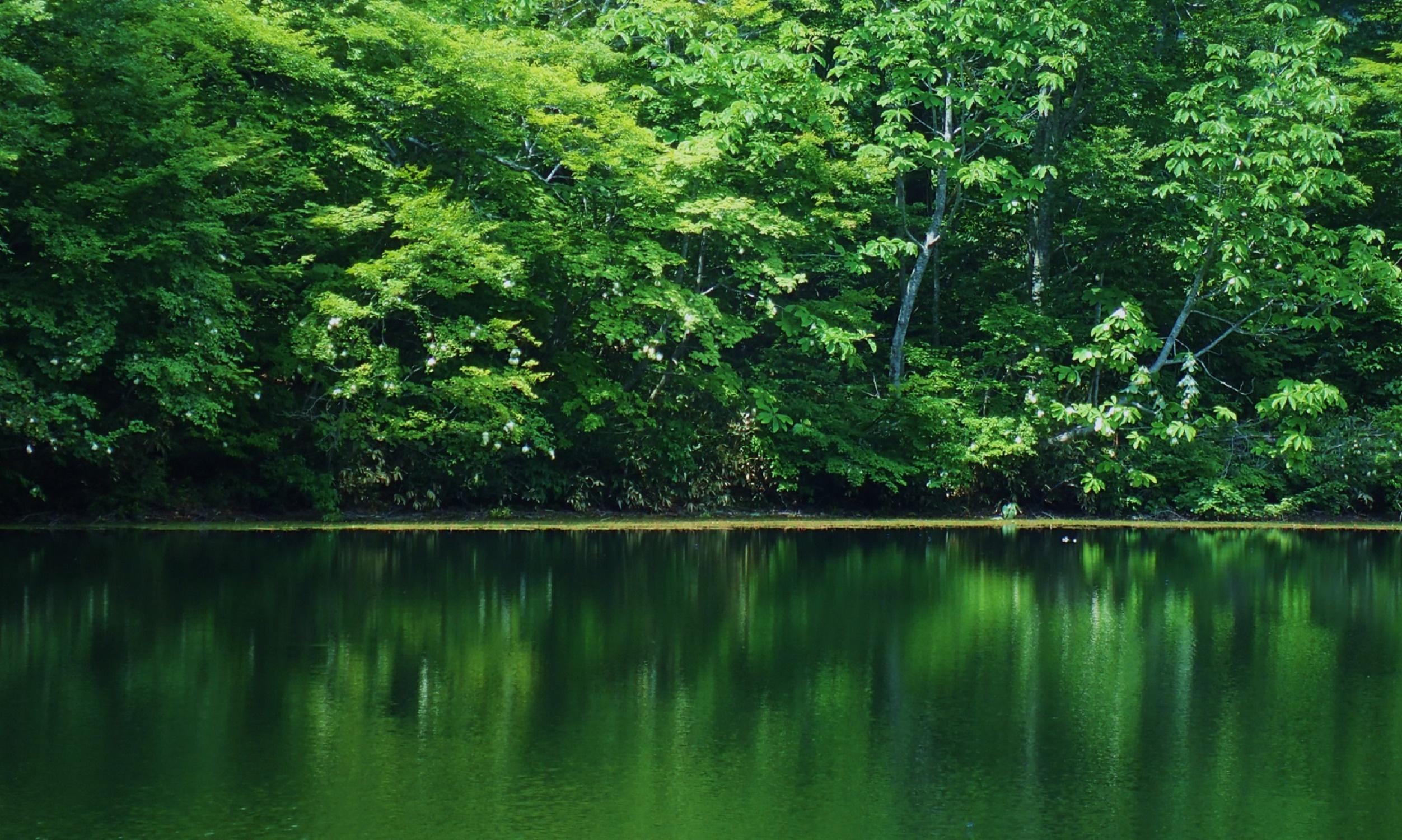 ただし、ここは刈込池。 水面に映る白い物は馬ではなく、卵。  (緑響く 白い卵の見える風景) 一体何の卵?? 答えは モリアオガエル。 池の畔に立って木々を仰ぎ見れば、そこには今まさに産卵しようとしているモリアオガエルのカップルがいるかもしれません。卵から生まれた愛しいオタマジャクシが、ちゃんと水へ飛び込めるように、水面に張り出した枝に産卵します。