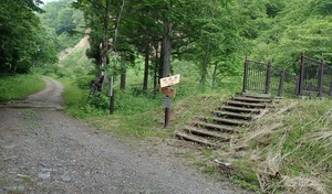 (駐車場横のハイキング道入り口) ここから先はトイレがないので、駐車場脇のトイレでしっかり済ませましょう。(山奥で管理にお金がかかるのでトイレチップをお願いしています。)
