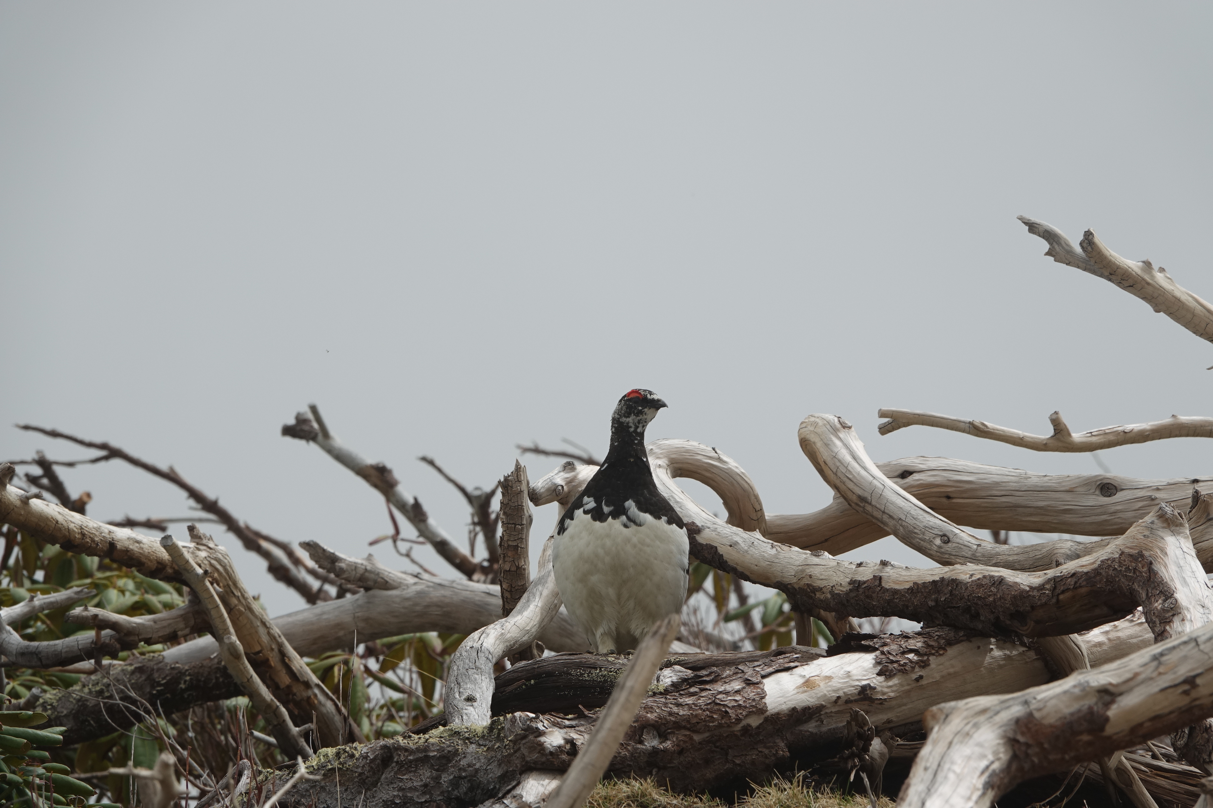 近くのハイマツの上から、雄ライチョウが見守っていたので退散しました。