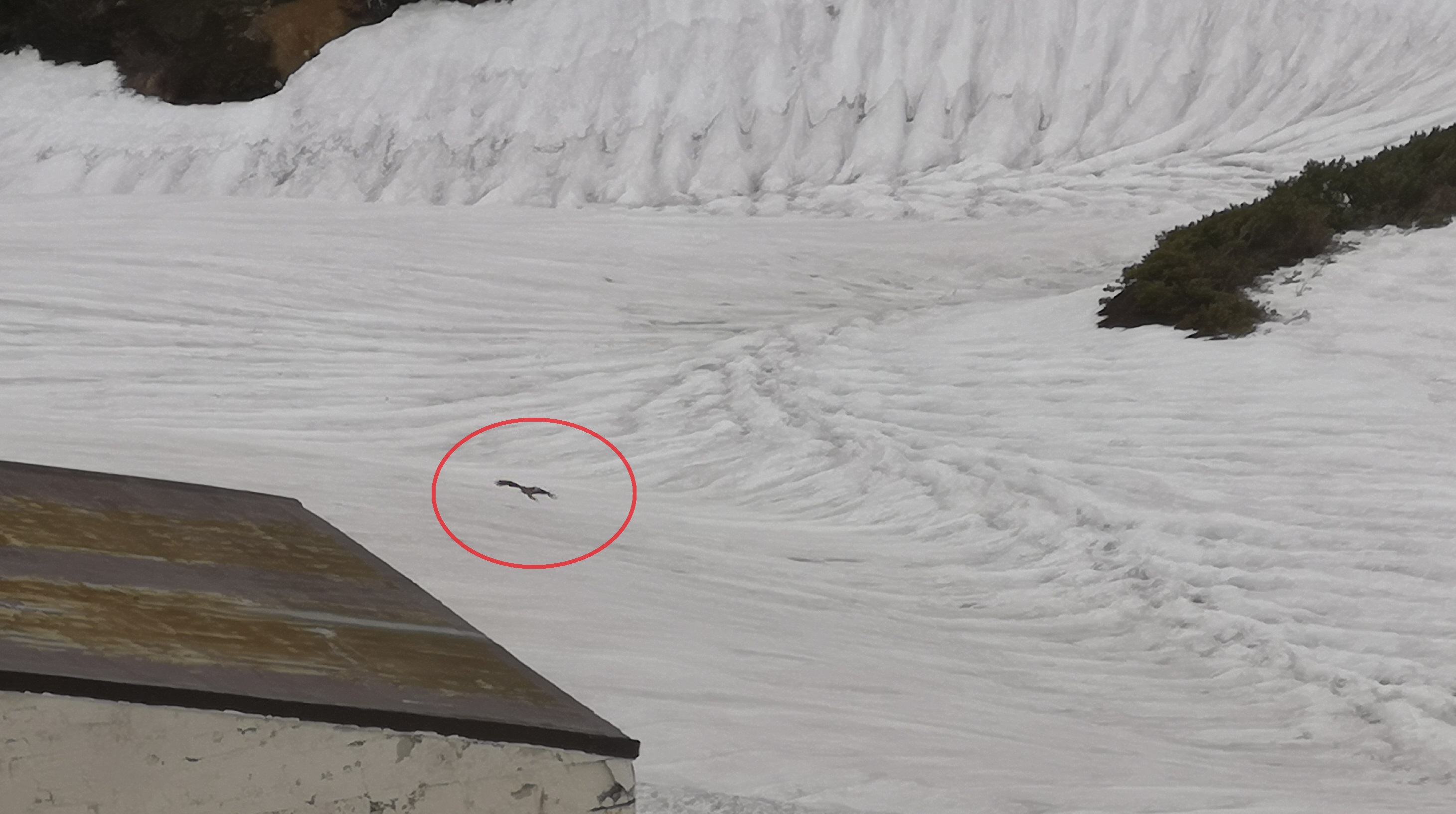 テントも人も残飯もないので目的は定かではありませんが、2,450mの室堂までくるのは毎年の習慣なのでしょうか(気流かも?)