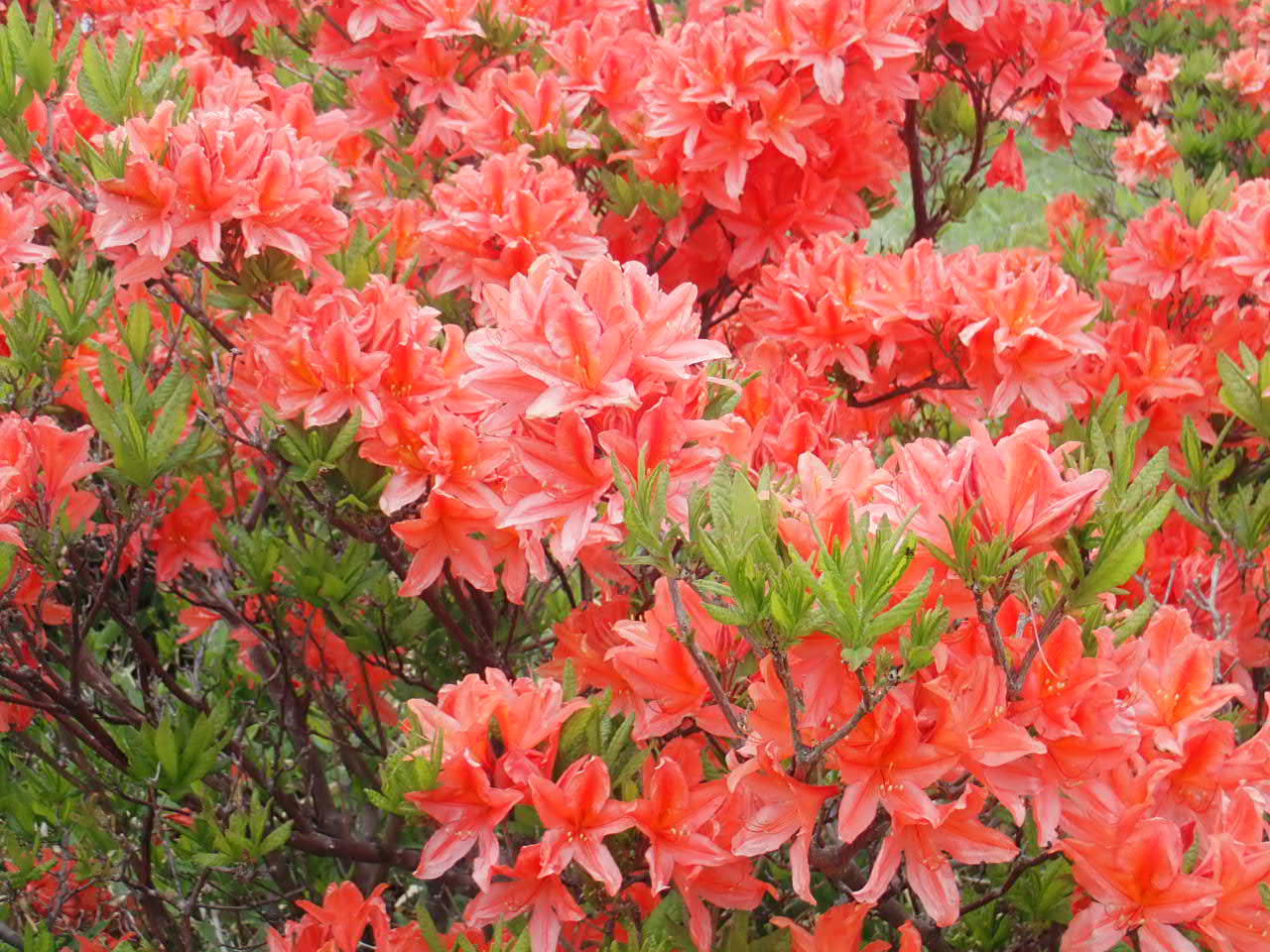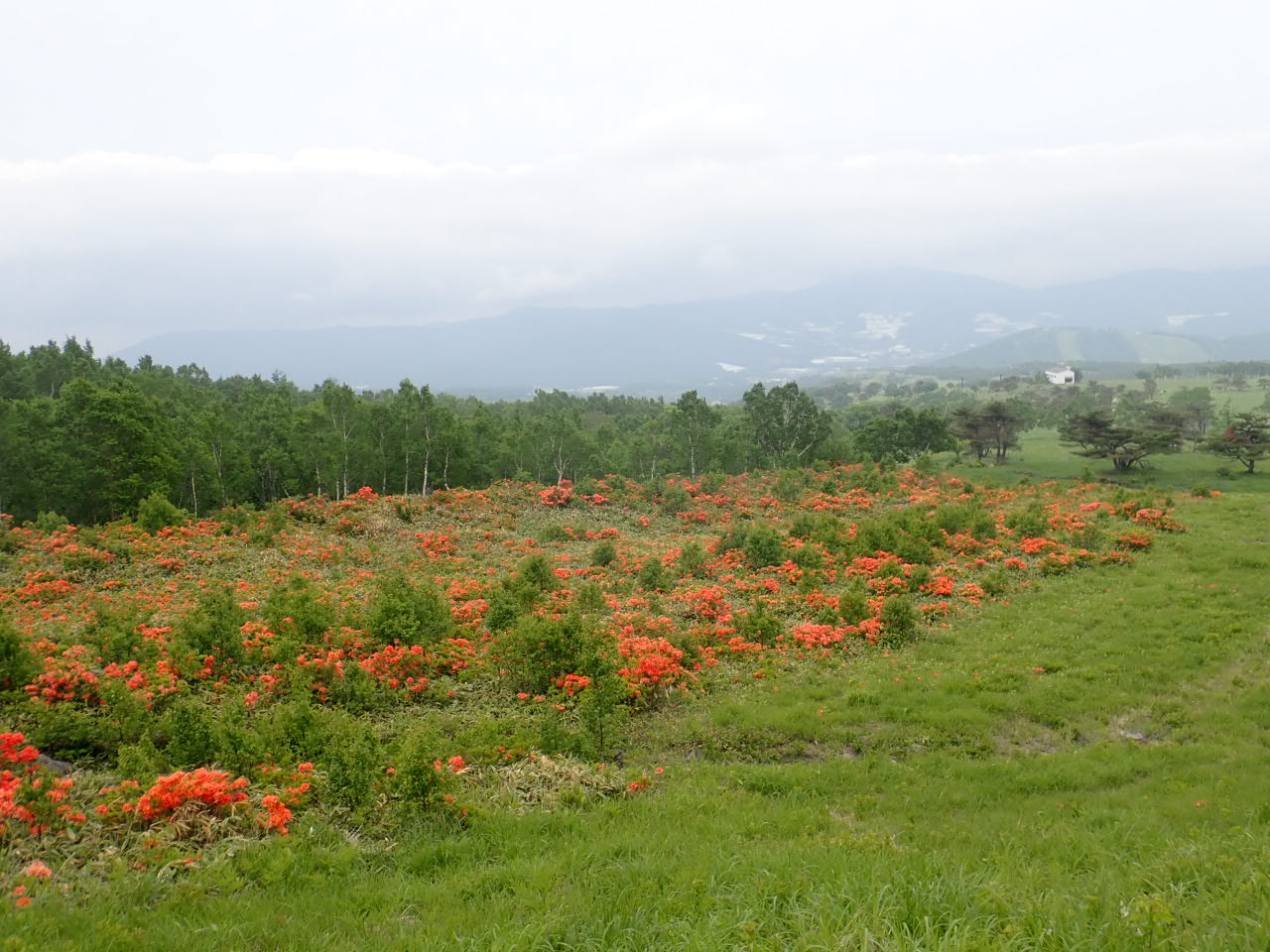 ⇑満開のレンゲツツジと牛たち。この時期ならではの風景です。