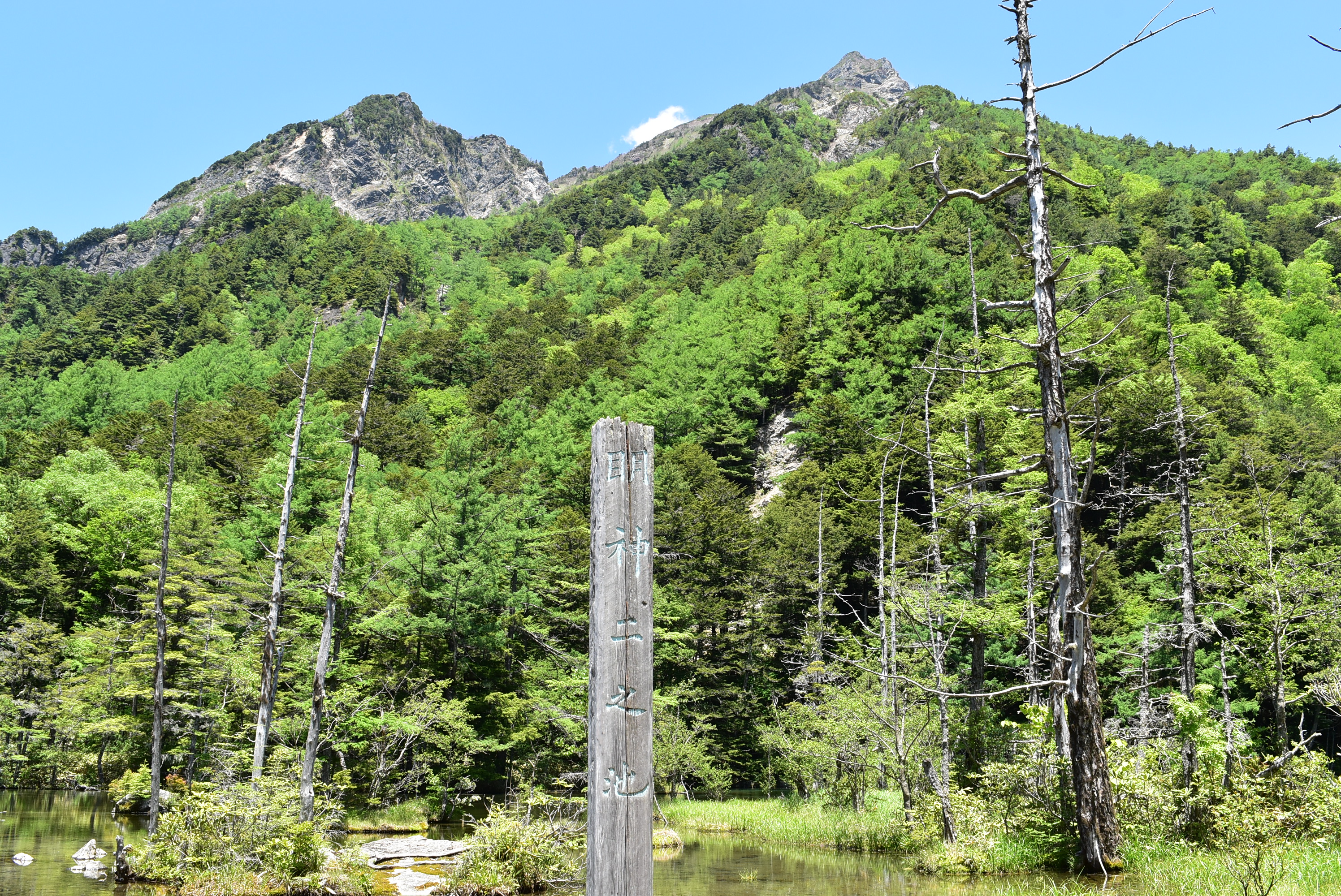 入口から少し進むと、明神岳をバックに、一之池を見ることができます。