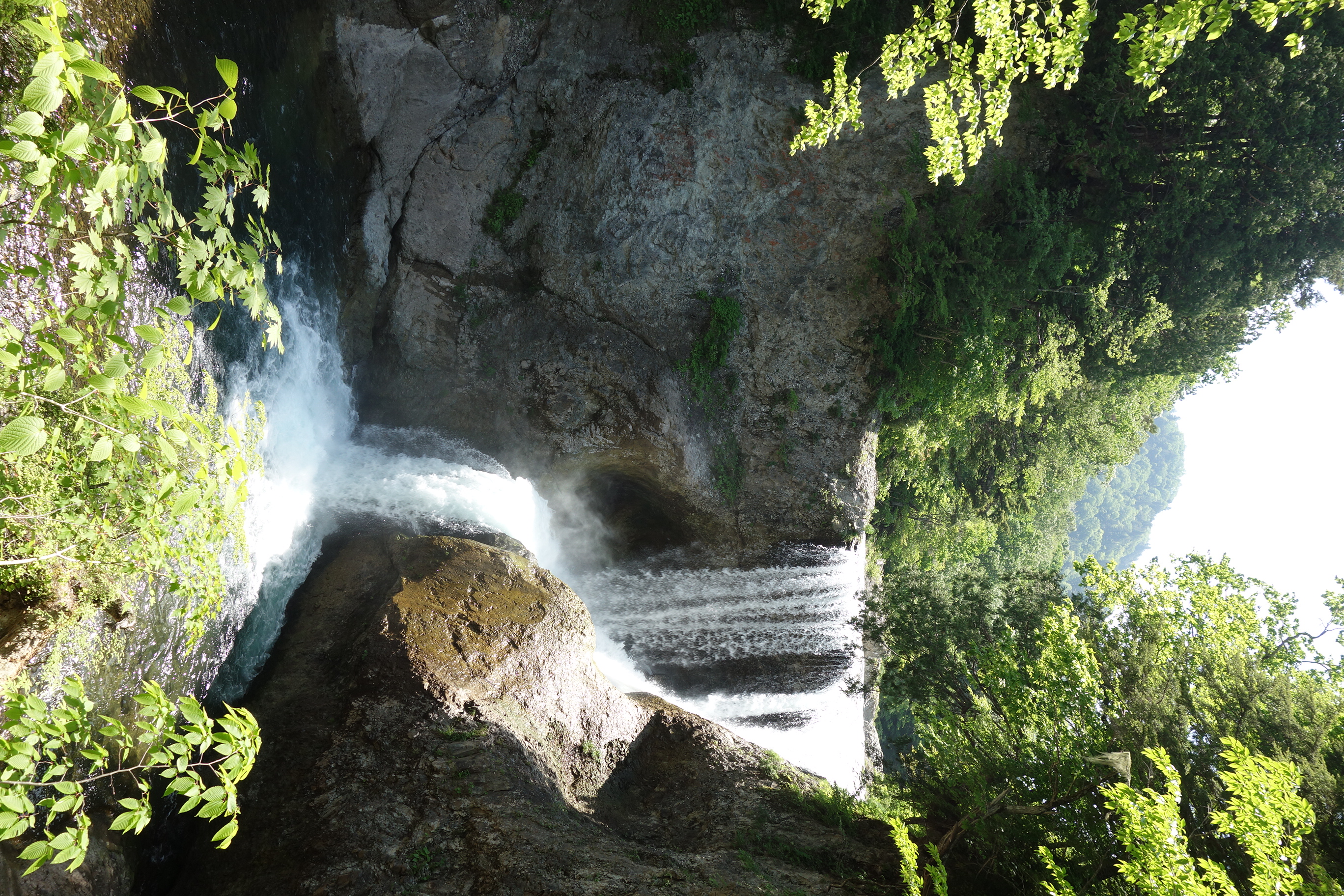<大滝(おおぜん)。雑魚川にある滝の中で最大の落差の滝です。林道秋山線脇の駐車スペースから山道を歩いて約20分かかります。落葉樹林を歩くので新緑や紅葉の頃は一層良い景色に感じます。苗場山麓ジオパークのジオサイト(見どころ)の一つです。平成29年6月20日撮影。>