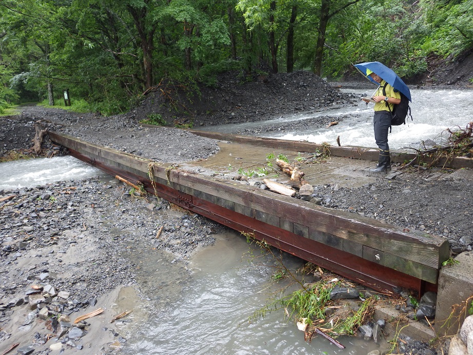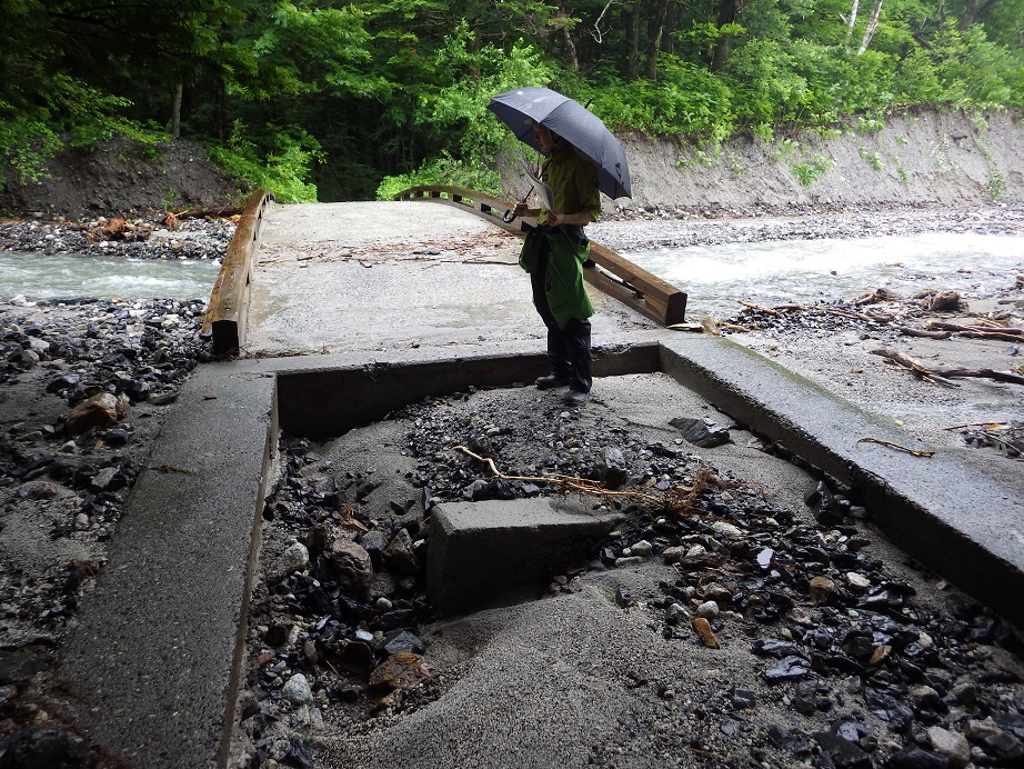 7月3日から続く大雨の影響で、上高地内の歩道では広い範囲で土砂崩れや橋の流失等の被害がありました。