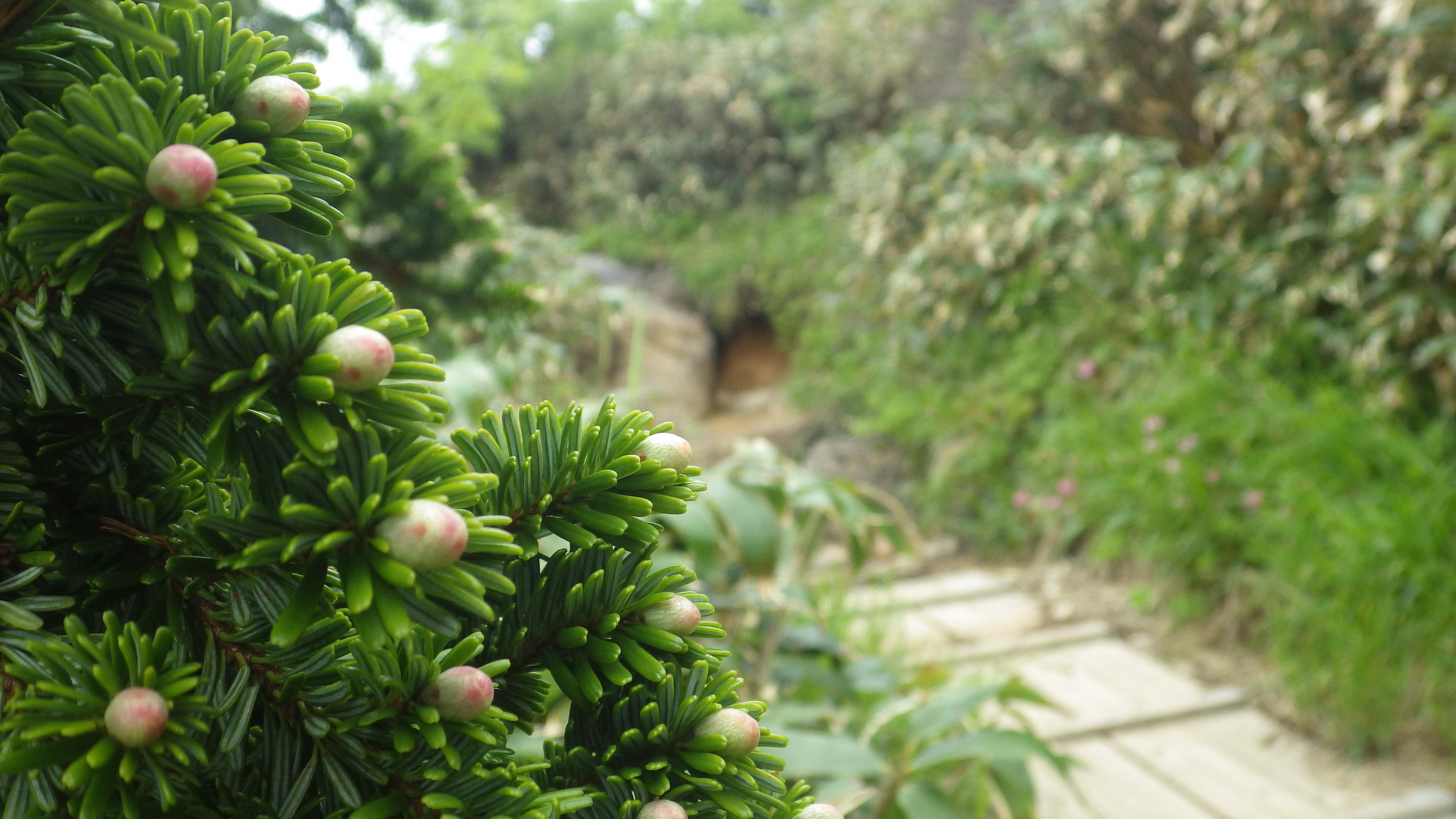 左:ベニサラサドウダン 右:オオシラビソの葉芽
