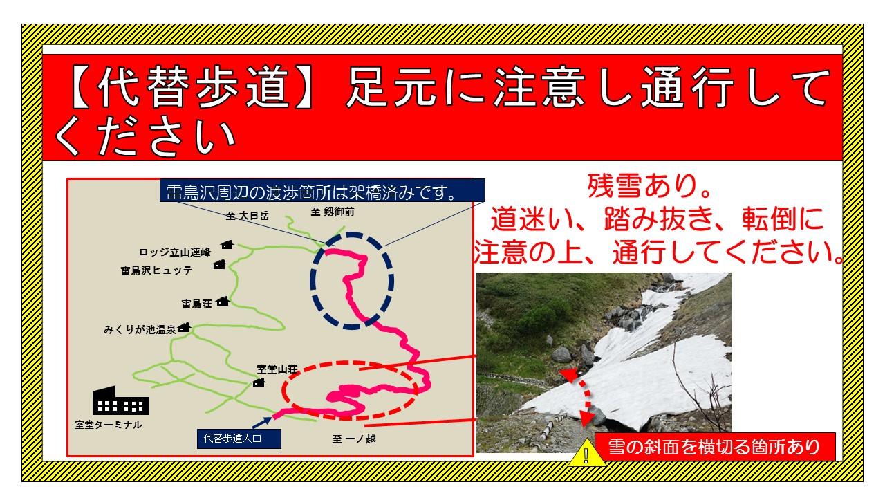 立山室堂の歩道の通行について(代替歩道&室堂ー天狗平間)