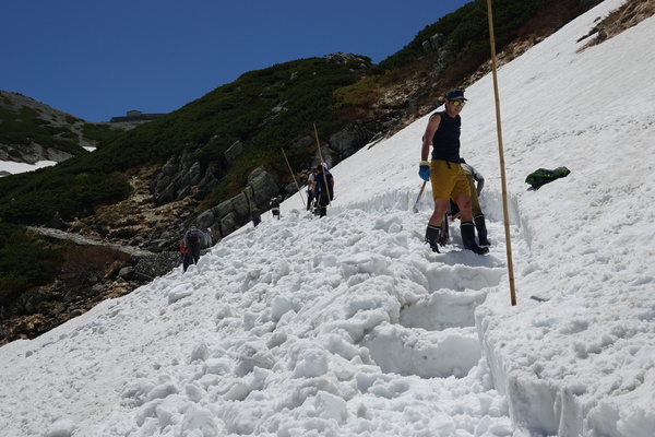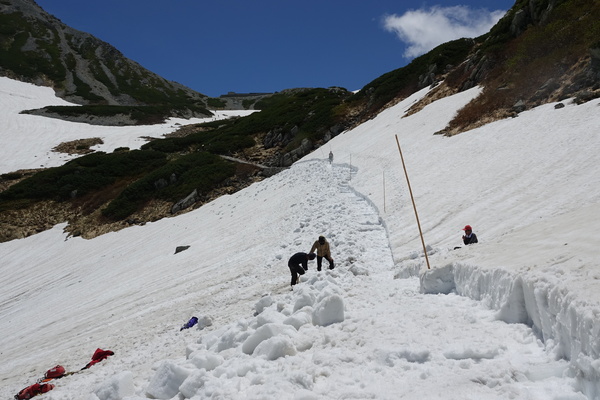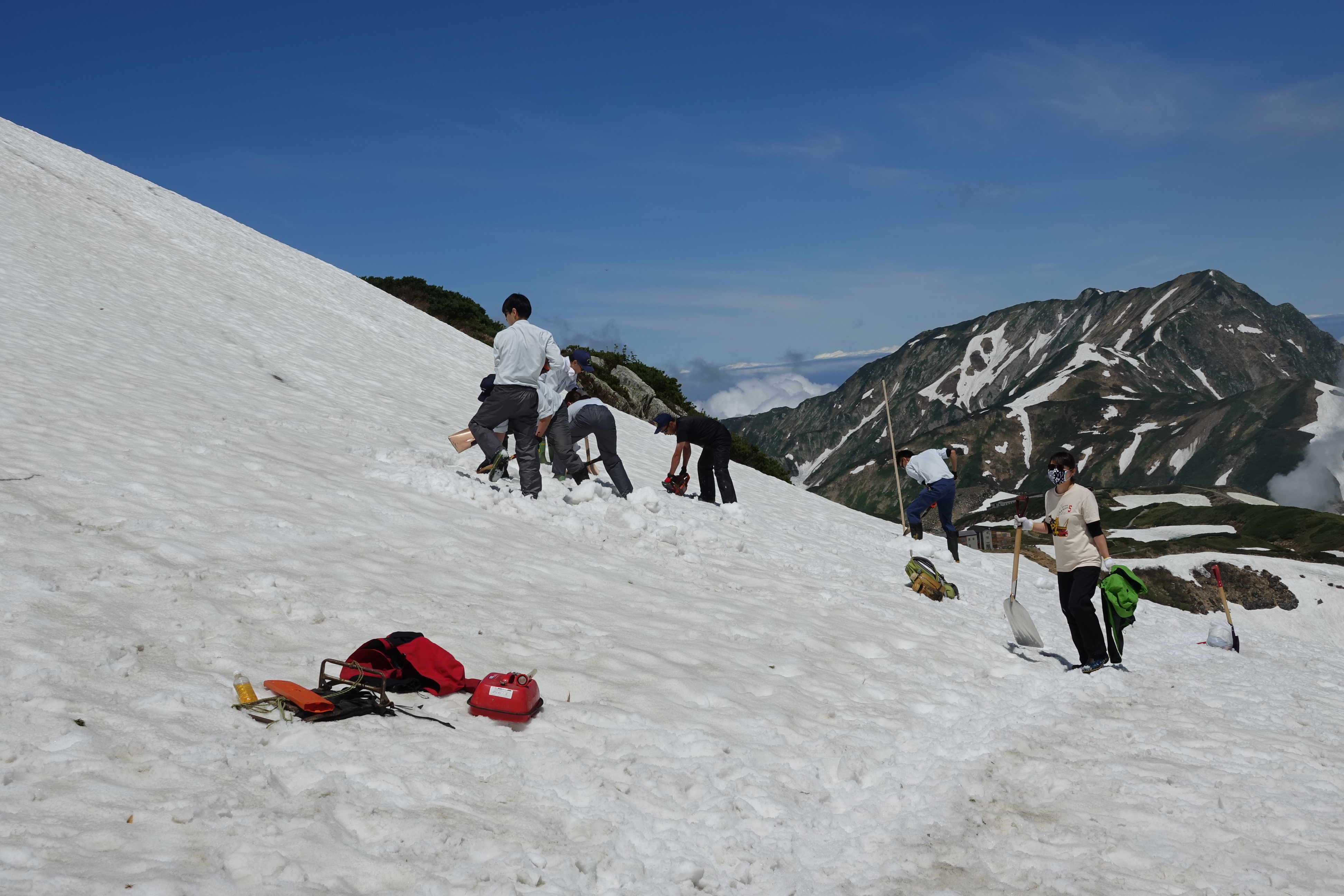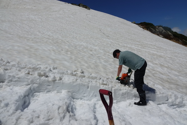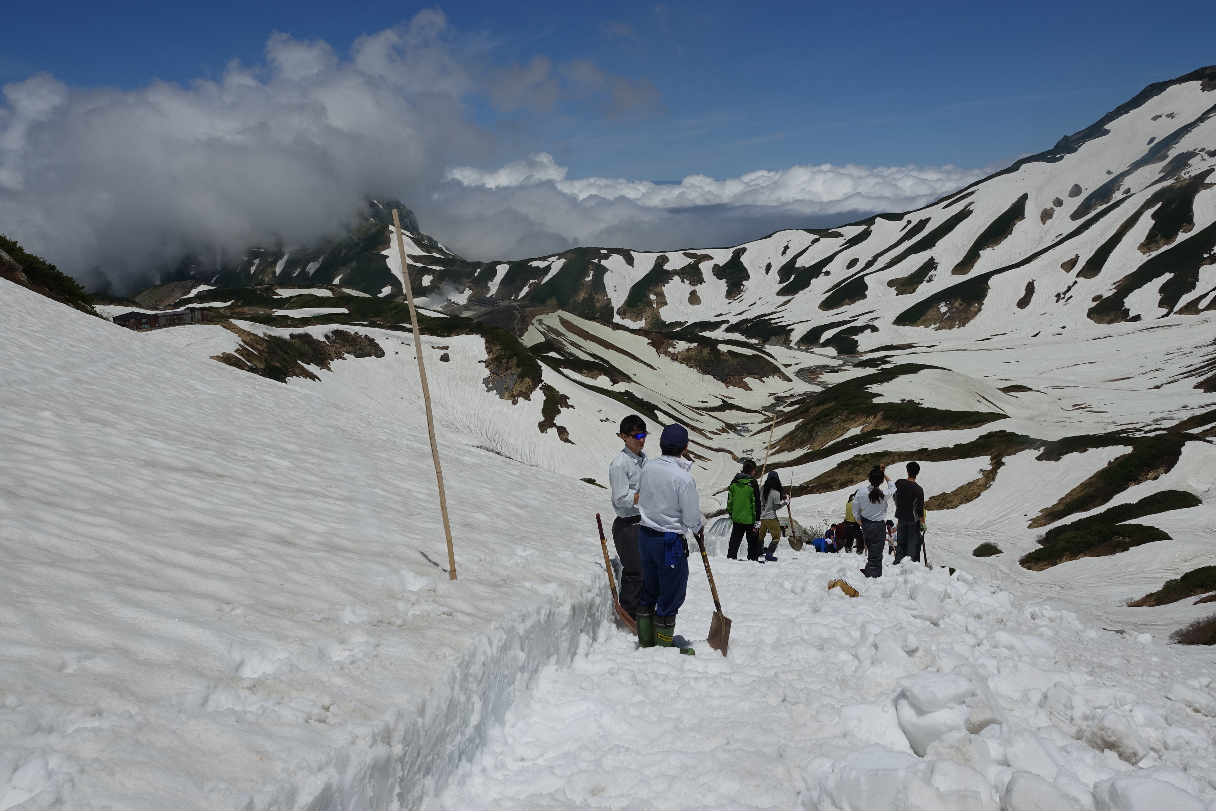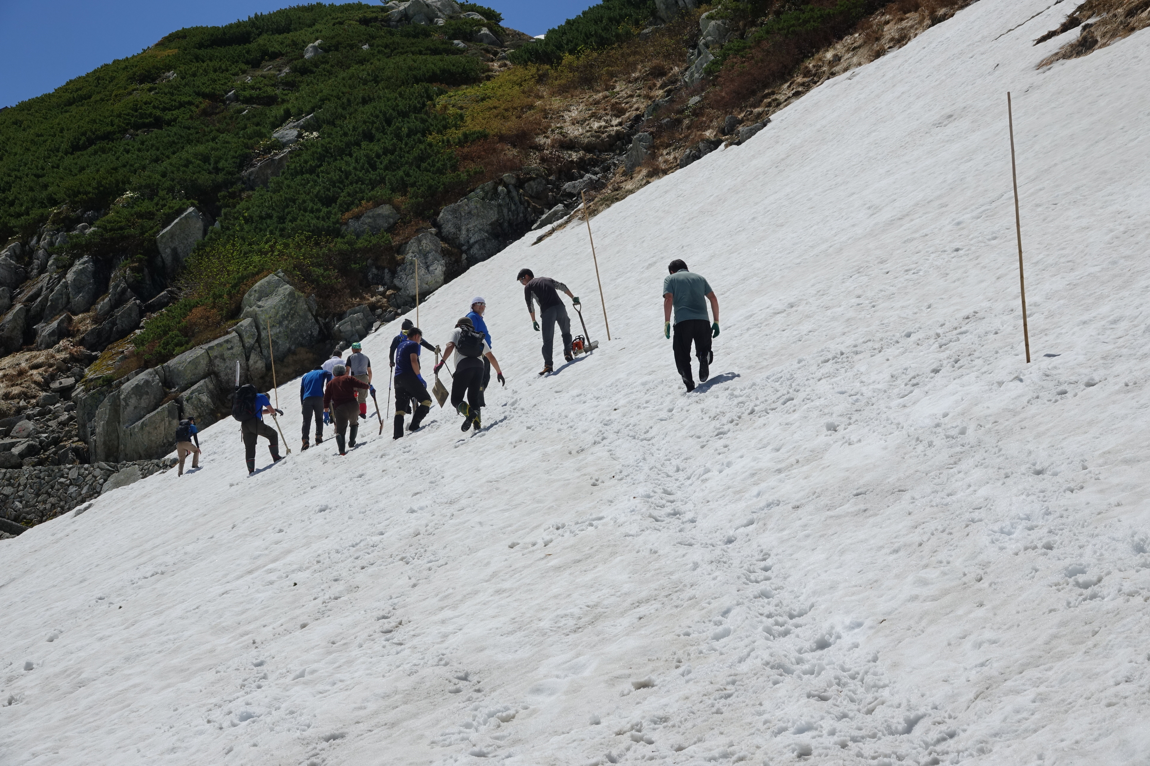「雪渓切り?なんぞや?」と思われた方もいると思います。僕も初めての参加で、「何するの?」と思いました。