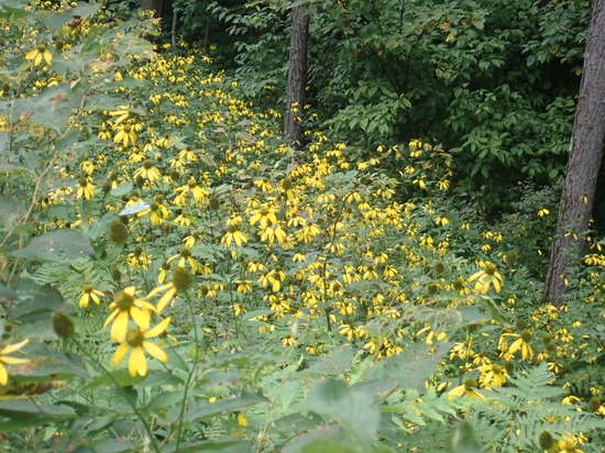 ↓近づいてみると・・他の植物の生える余地がなく一面オオハンゴンソウ!