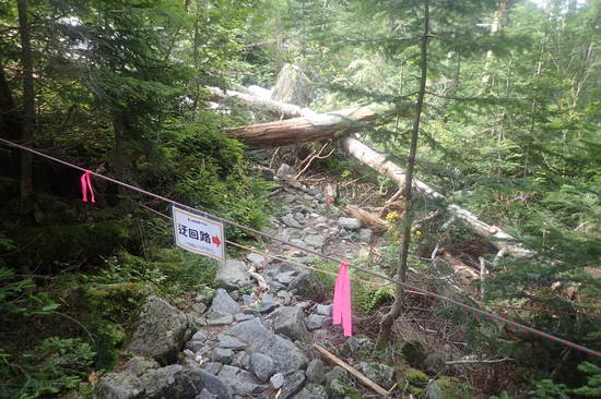 山小屋関係者によって安全に、そして分かり易く迂回路が示されていました。