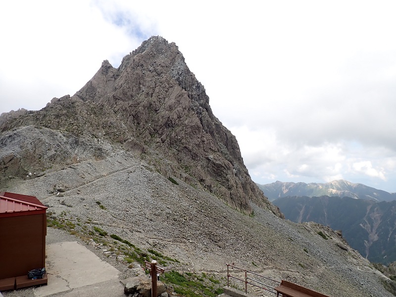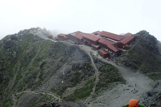 慎重に穂先を往復しましたが、登山道はしっかりと整備されており、登り降りの道順の整理と梯子の区別、また難所での手足の置き場をサポートするマーキングなど安全に対する山小屋や登山関係者の思いが伝わります。