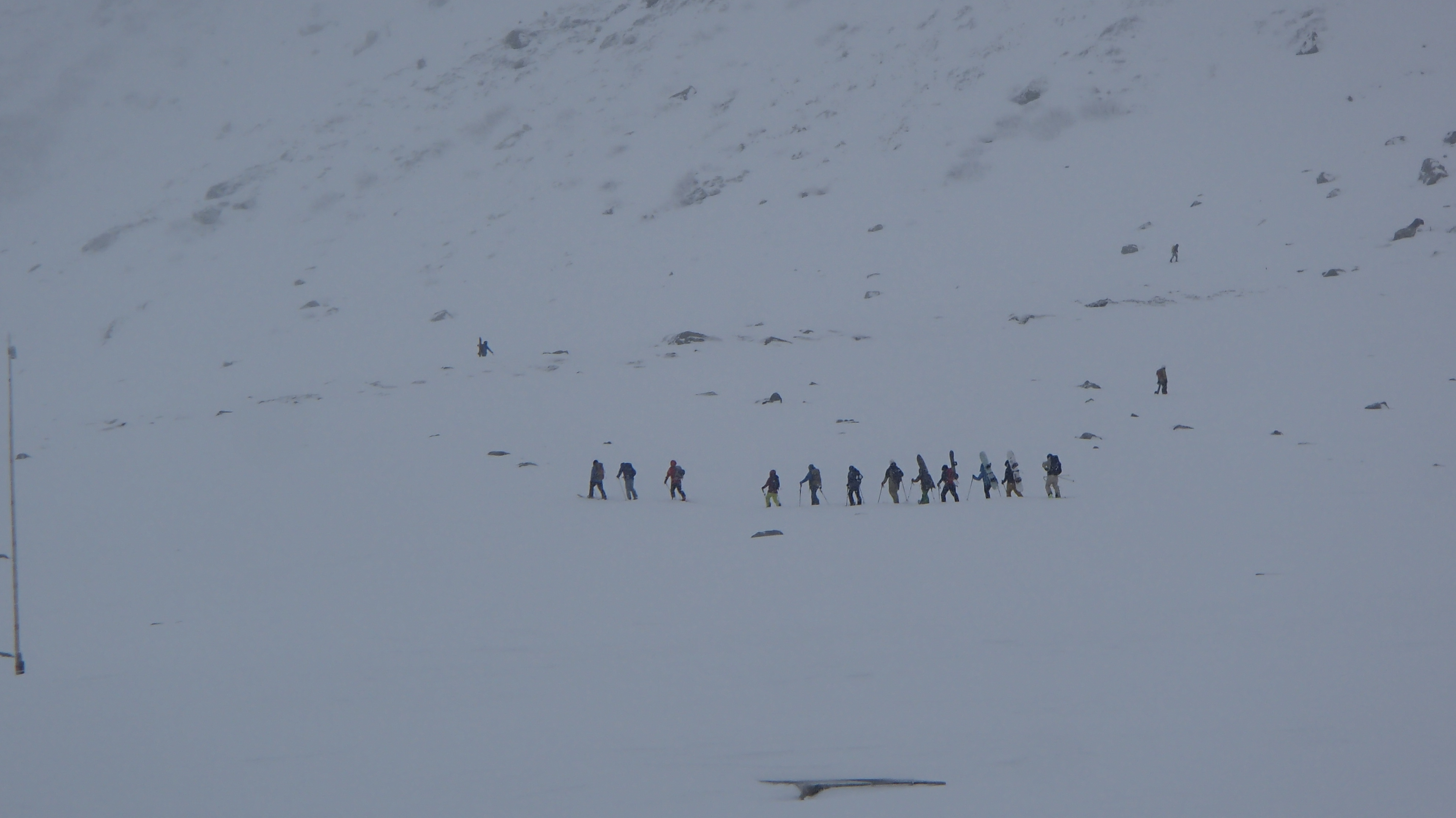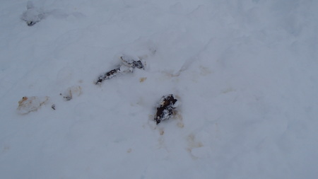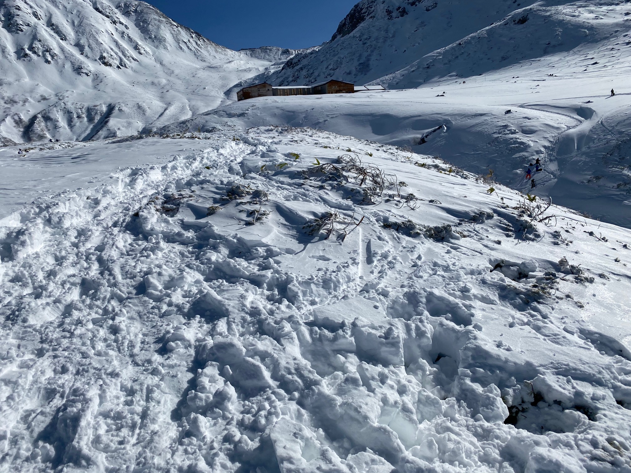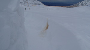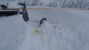 植生が見えている箇所での滑走跡、踏み跡が見受けられました。