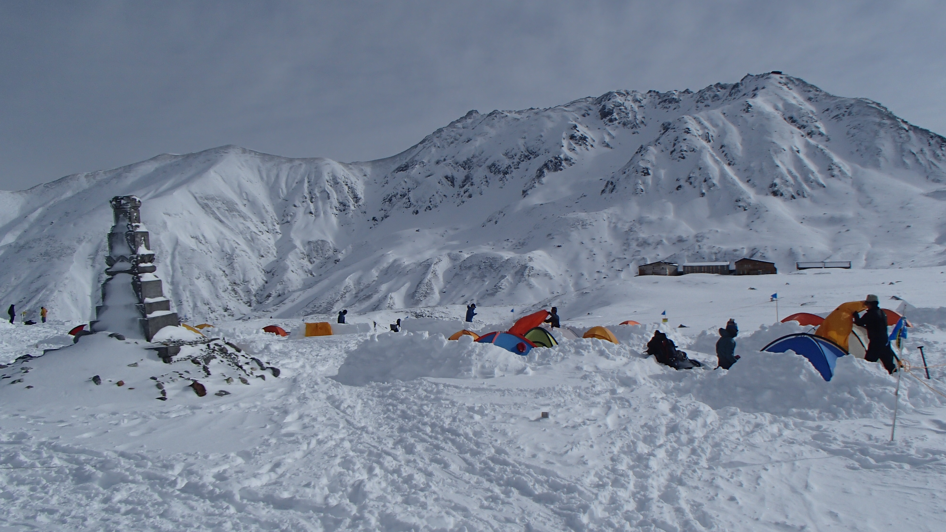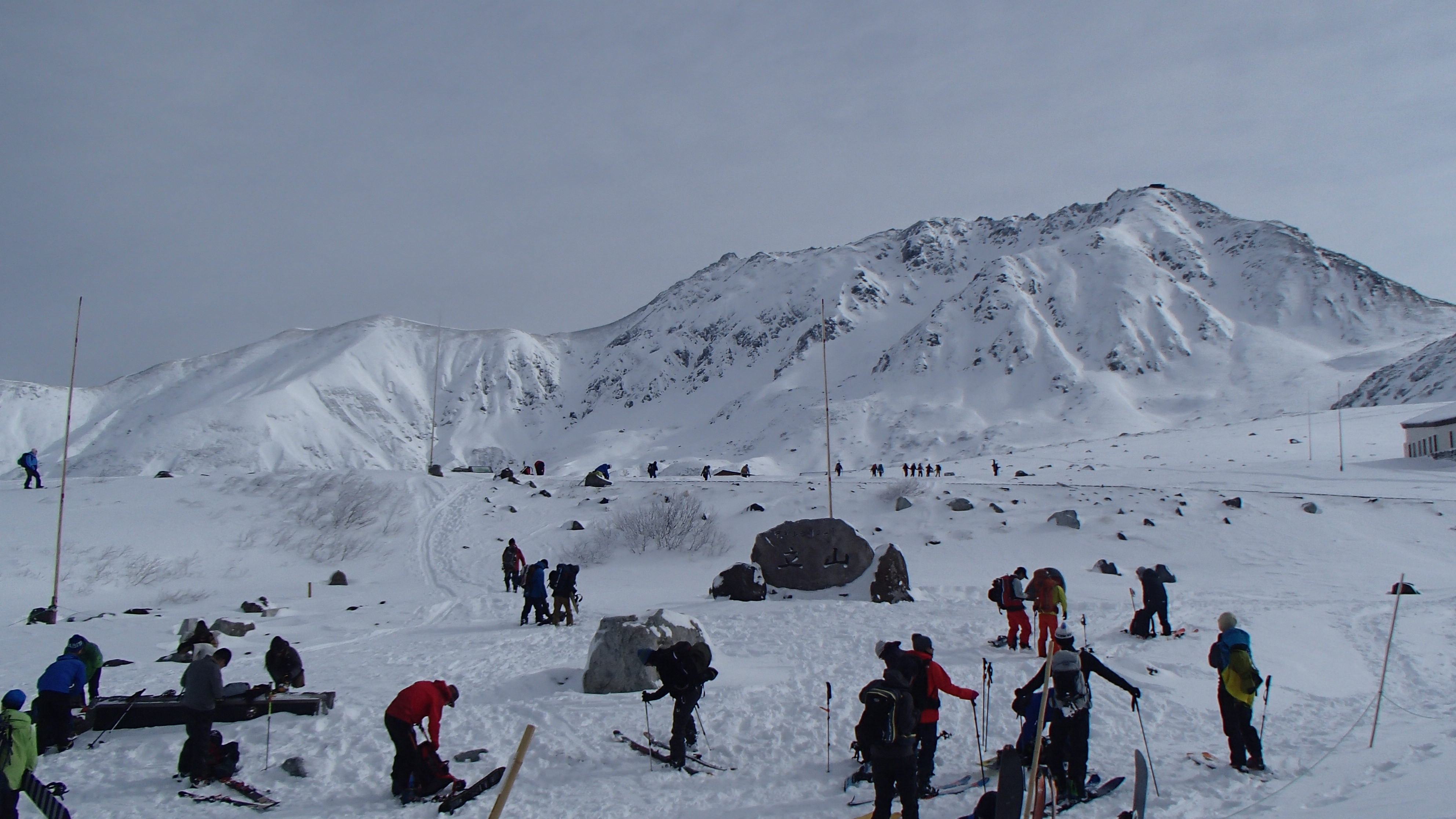 11月末に1日に60cm程積もる雪が降ったことで室堂周辺もかなり植生が隠れて白くなってきました。最終の土日の28,29日には、テントが50張を越える数の利用者が見受けられました。