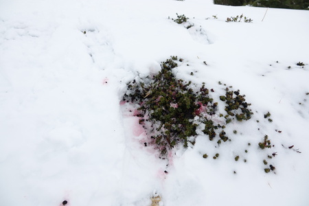 <ガンコウランの上の踏み跡>