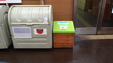 <ゴミ箱は、室堂ターミナルに設置されています。緑色が携帯トイレ用>
