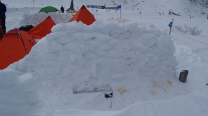 <11/29 仮設野営指定地から奥に見える建物が室堂ターミナル >