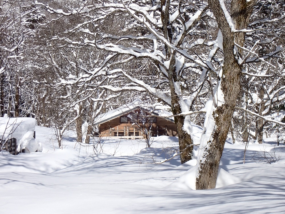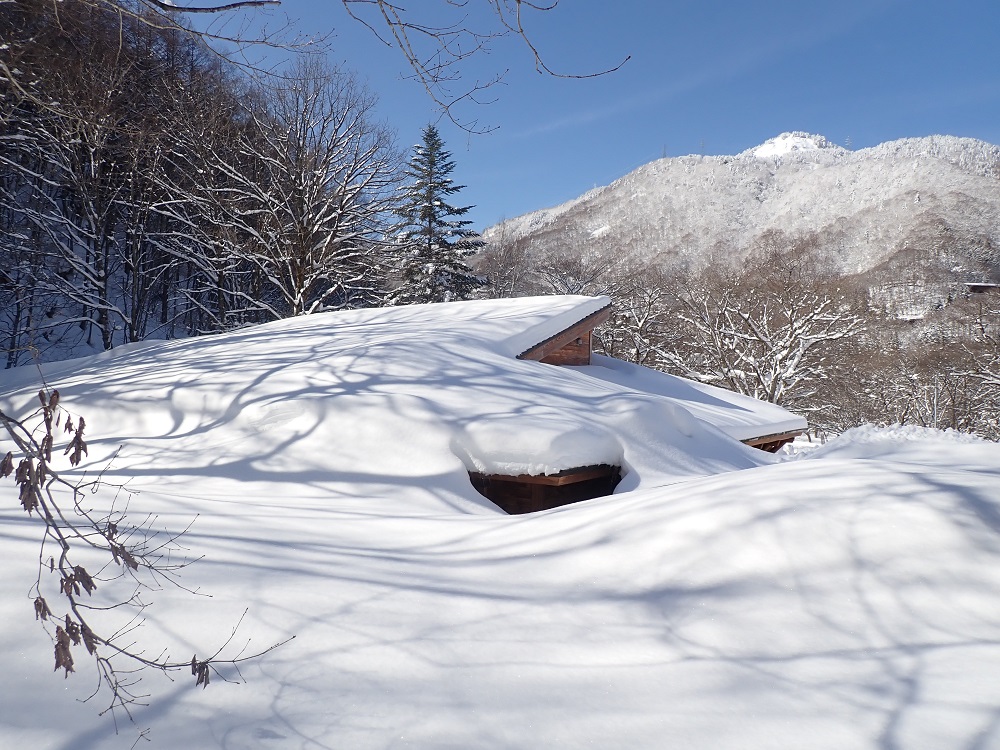 建物はすっぽりと雪の中でしたが、屋根雪が自重で落ちた跡も