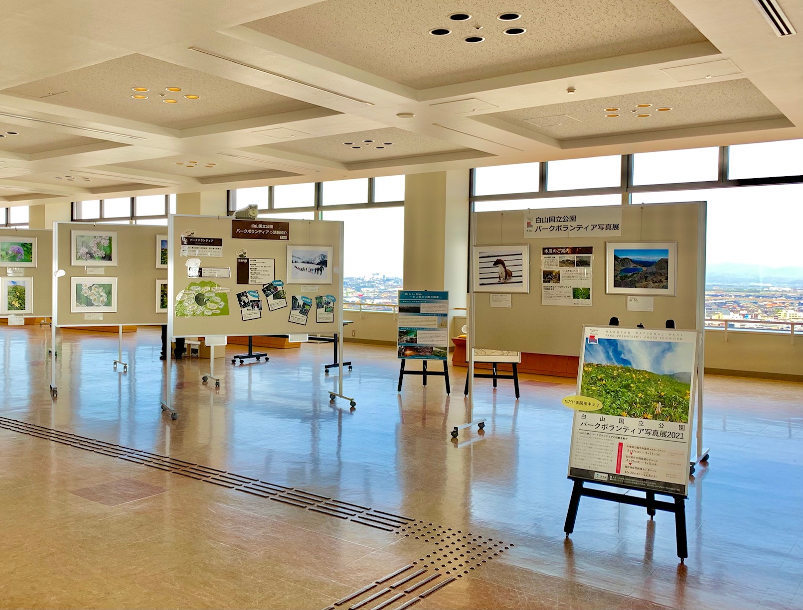 (4月22日の白山、白峰の西山から撮影) 先週末の冷え込みで、4月19日は白い白山に逆戻りしていました。しかし、今日はまた黒い部分が出てきていました。季節は一進一退の様子です。 さて、今年も白山国立公園パークボランティア写真展を開催しています。 先月末から先週は、石川県小松市にある木場潟公園の中央園地にあるメダカハウスで開催していました。桜の開花とタイミングがぴったりあったため、公園に散歩に訪れた近隣の方々に見ていただけたようです。 そして、本日、4月22日(木)から5月5日(水)の期間は、石川県庁19階の展望ロビーで開催しています。入館、観覧は無料です。
