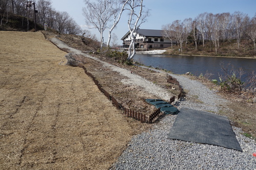環境省は昨年度、蓮池に広場や遊歩道を整備しました。蓮池周辺では雪がほとんど解けたため、グリーンシーズンに向けた作業を4月12日に行いました。