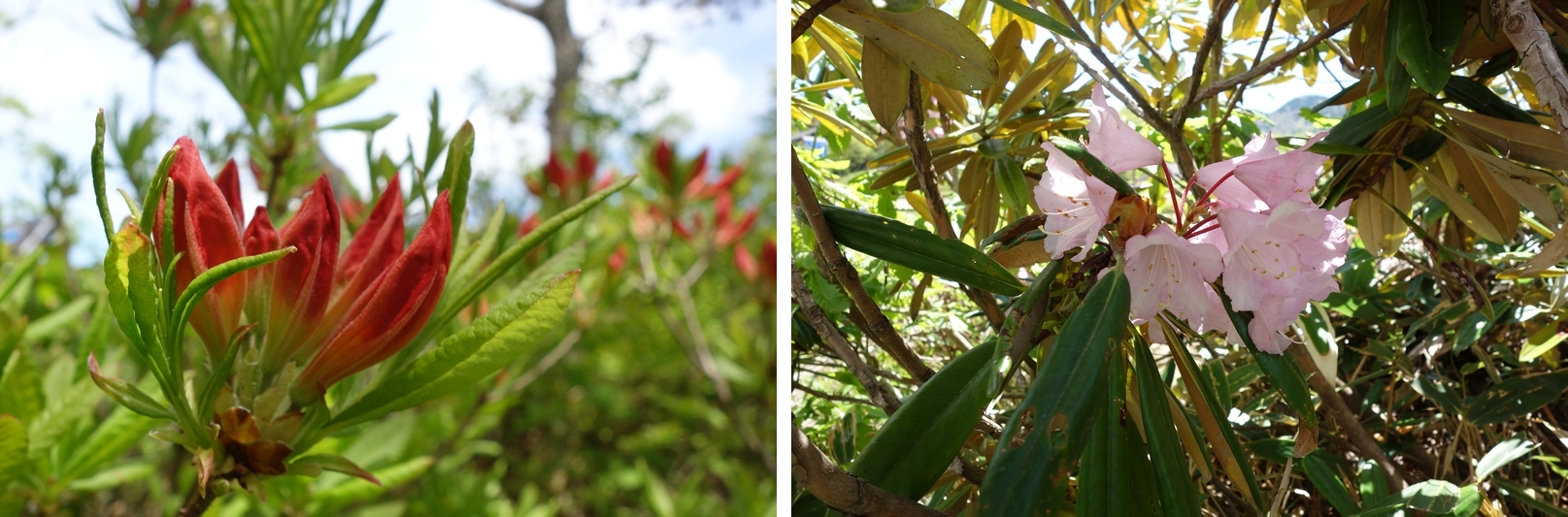 右:アズマシャクナゲの花は終わりかけでしたが、きれいなものが残っていました。