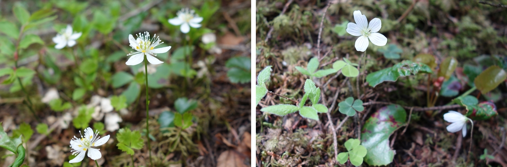 左:ミツバオウレン。右:コミヤマカタバミ。
