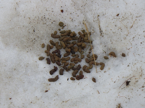 <雪上に残っていたライチョウのフン>