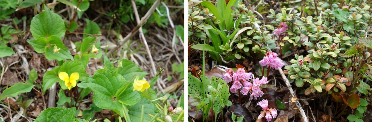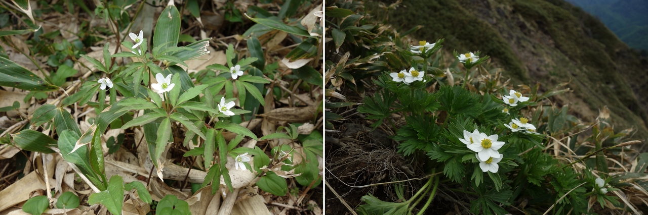 左:ヒメイチゲ。右:ハクサンイチゲ。