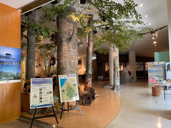 建物右側の森や川の生き物、白山と人の関わりについて学べる展示エリアは、常時ご利用いただけますので、どうぞご利用ください。