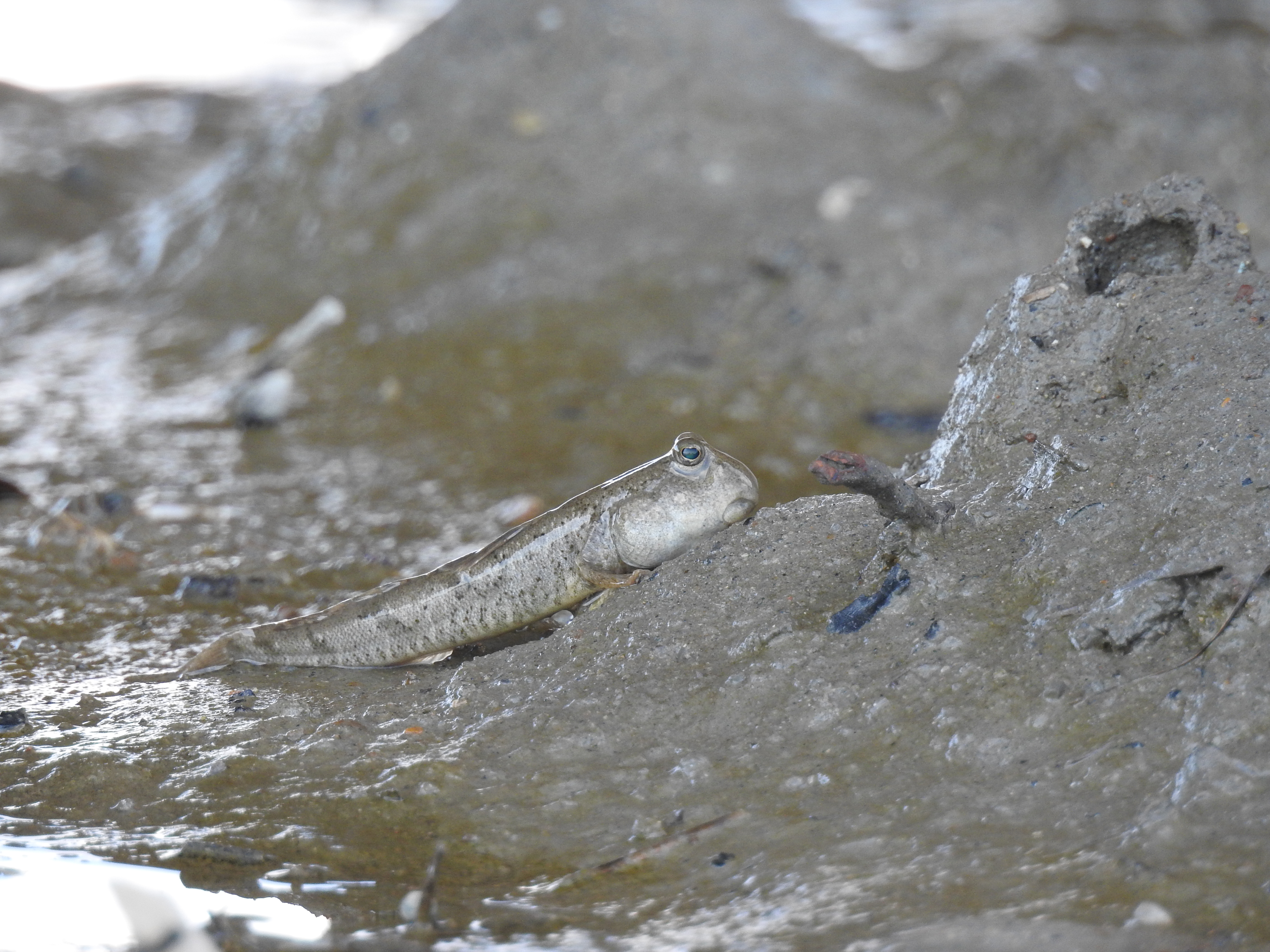 こちらは2018年に撮影したトビハゼとチムニー型の巣穴。ちょっと分かりにくいですが、右側に巣穴が見えます。春、そろそろ巣穴から出て活発になってきたかな?と確認しに行ったときの一枚です。