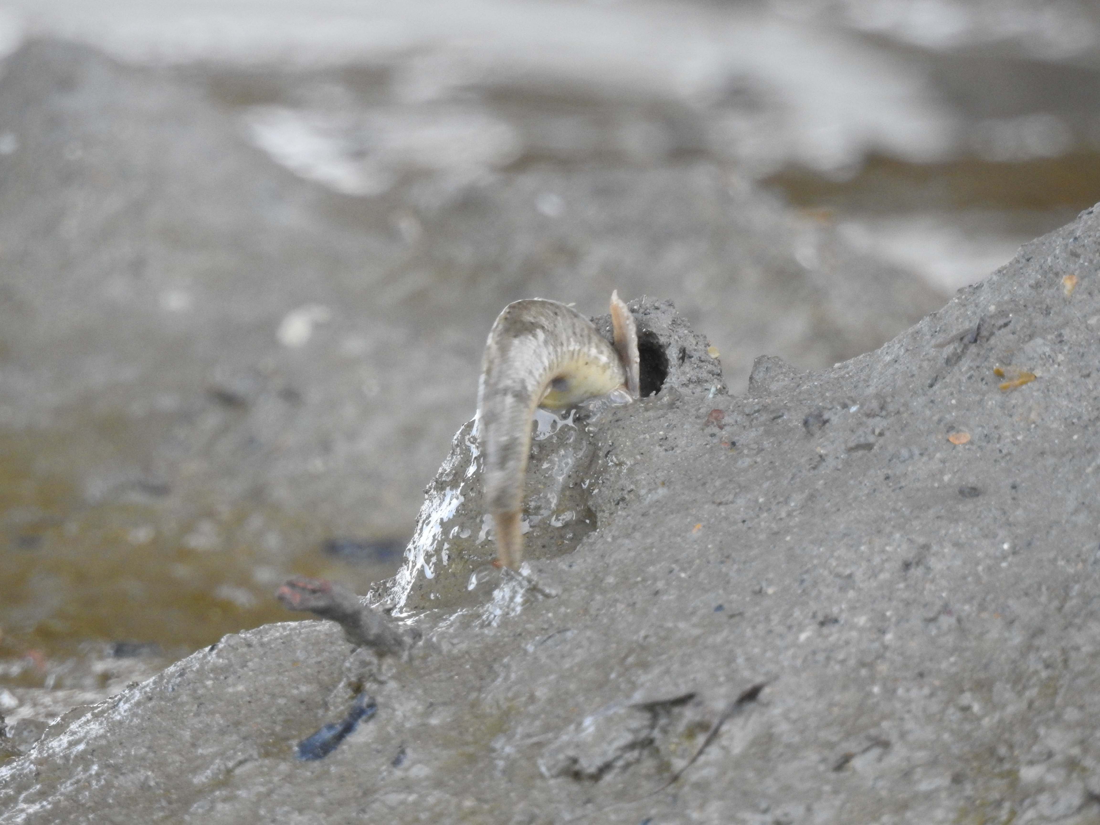 トビハゼには、標準型・クレーター型・チムニー型という3種の巣穴を作ることが知られており、チムニー型は冬の越冬用と言われています。これまでにもチムニー型や標準型は、これがそうかな?と思うものを見つけていましたが、クレーター型は見たことがなかったので、うれしかったです。