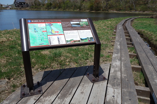 蓮池周辺にある4基の解説標識は、冬期の雪害を避けるために地上部を撤去していました。グリーンシーズンを前に設置しました。