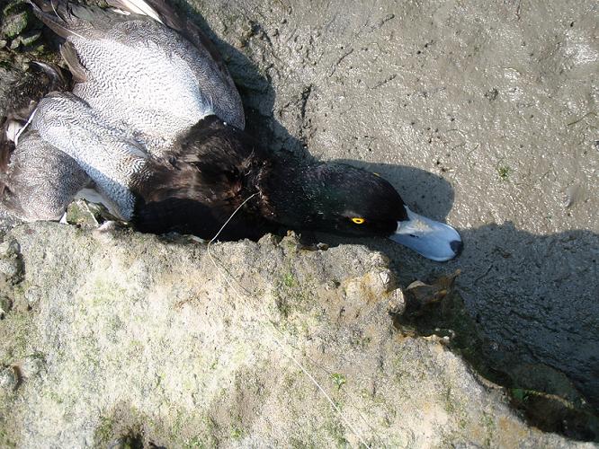 <2011年撮影:釣り糸に絡まってしまったスズガモ>