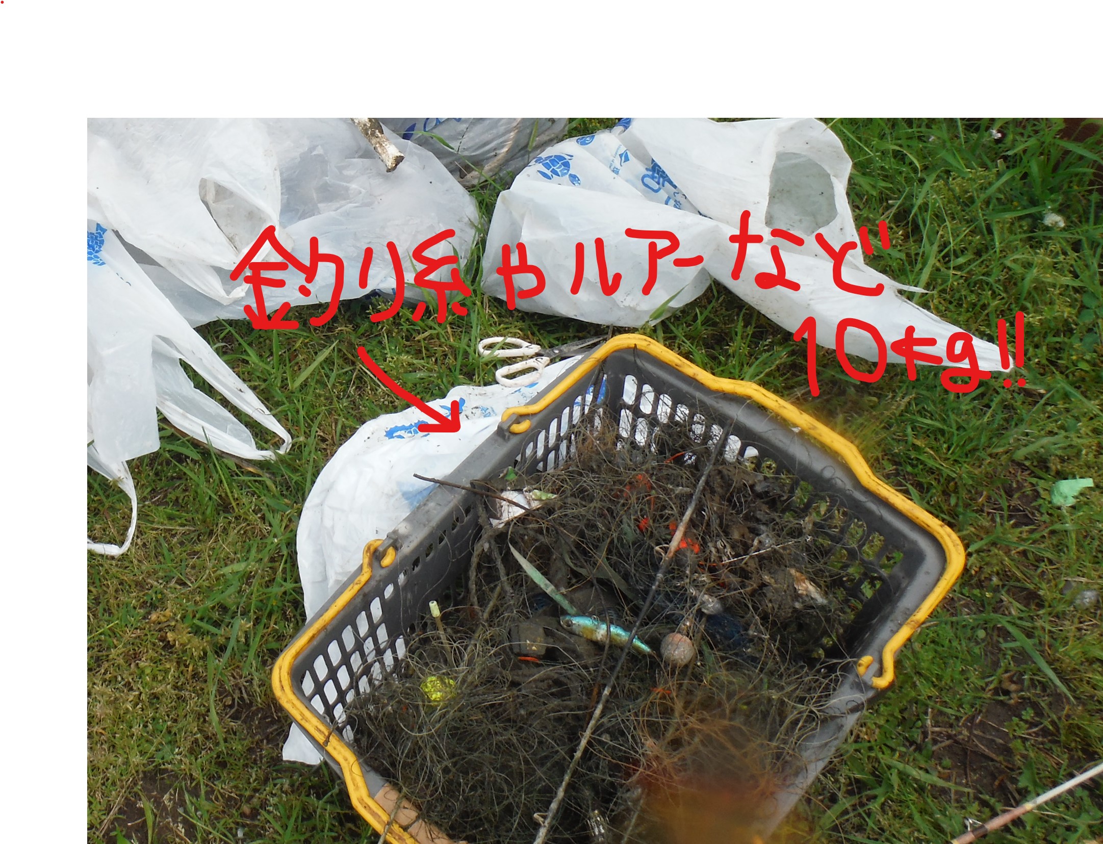 <釣りゴミだけを集めたカゴ>