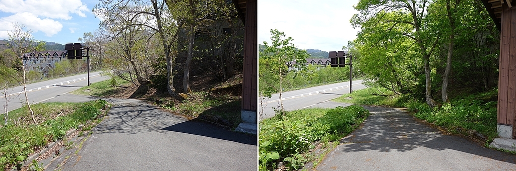 標高約1,500mで国立公園内にある志賀高原管理官事務所でも、6月初め頃にようやく木の葉が広がり、木の影ができるようになりました。写真は事務所への進入路です。
