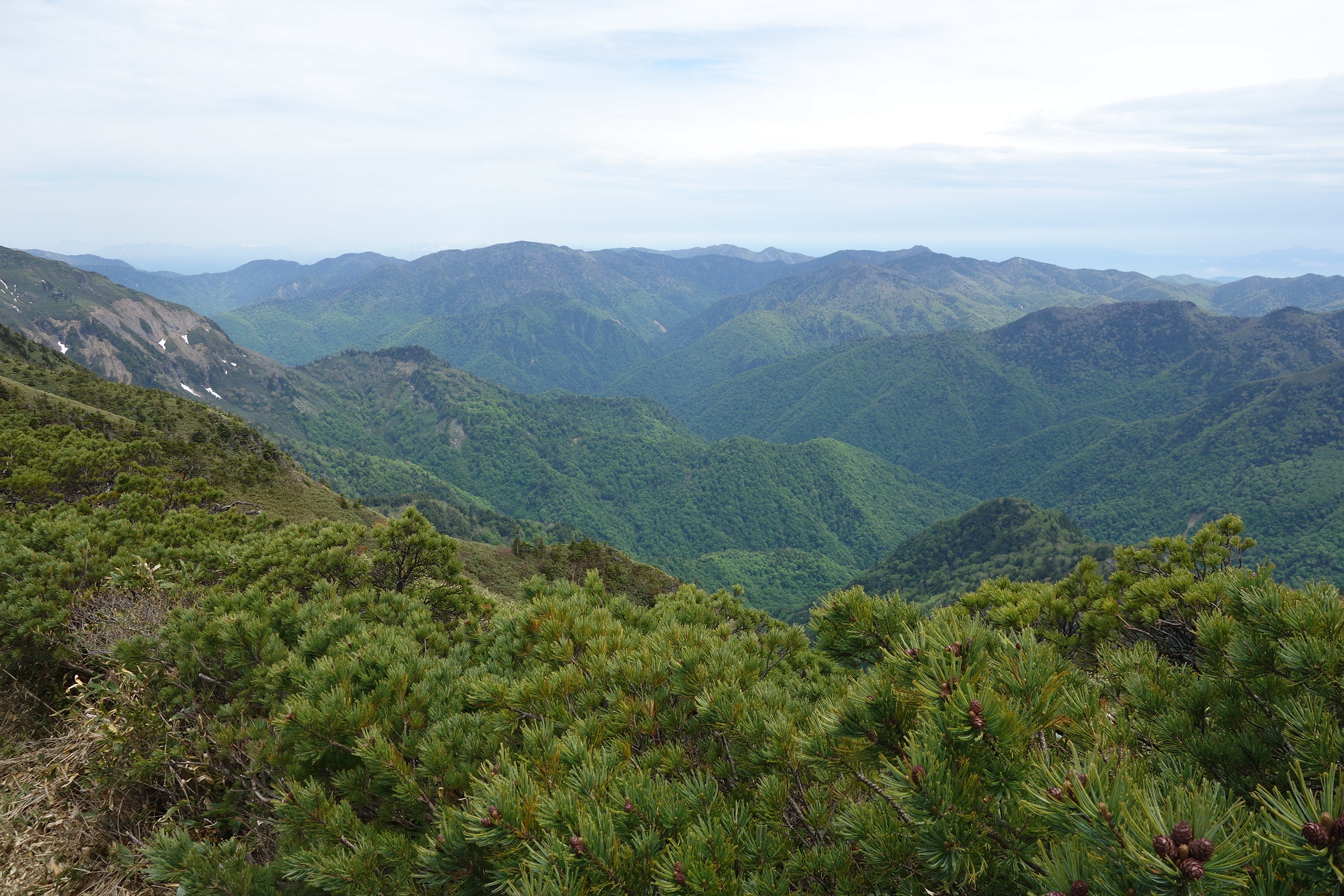 <岩菅山山頂付近から雑魚川源流部を望む。志賀高原ユネスコエコパークの区域を拡張する計画があり、写真手前の谷は核心地域となります。拡張されると、山ノ内町も町内全域がユネスコエコパークの区域になります。>