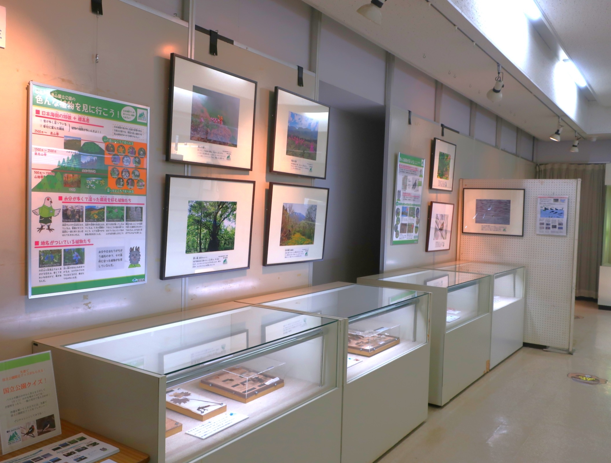7月19日からは野尻湖ナウマンゾウ博物館の3階で、11月まで企画展を開催中。こちらは写真のほかに、妙高市の妙高高原ビジターセンターなどからお借りした剥製を中心に、なぜ、いろんな姿の鳥がいるのか、地面の下には何がいるのかなど、国立公園の自然を新たな視点で楽しむ提案ができるような展示にしています。妙高戸隠連山国立公園10周年オリジナルグッズが当たるクイズもあり、幅広い年代の方に見てもらえるように頑張ったので、ぜひ、足を運んでみてください。