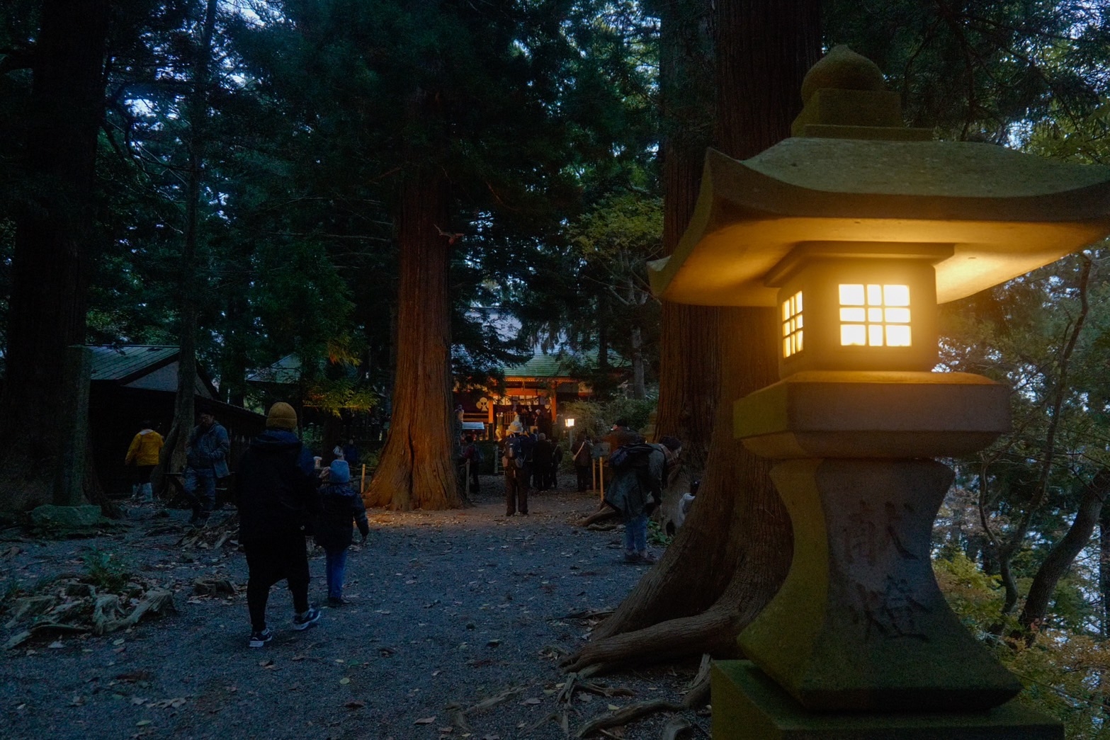 孤島の神社で巨木に囲まれて迎える夕暮れや、船上から眺める月明かりに照らされた野尻湖を満喫。準備した時の想定を超える景色を見ることができました。