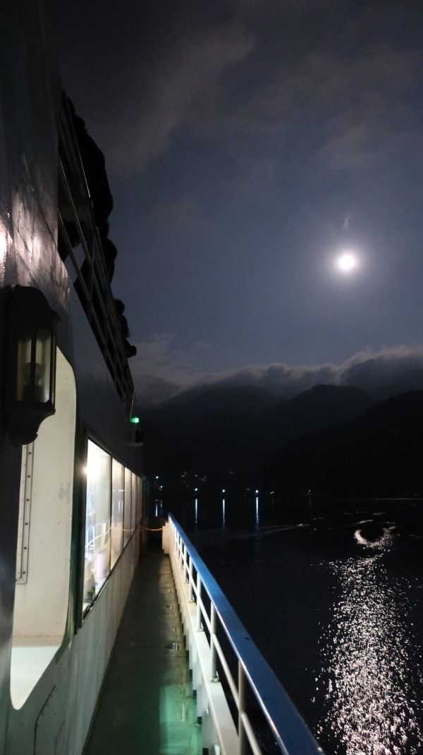 それまで暗かった分、月光を受けて輝く湖面を進む時間はより幻想的に感じました。
