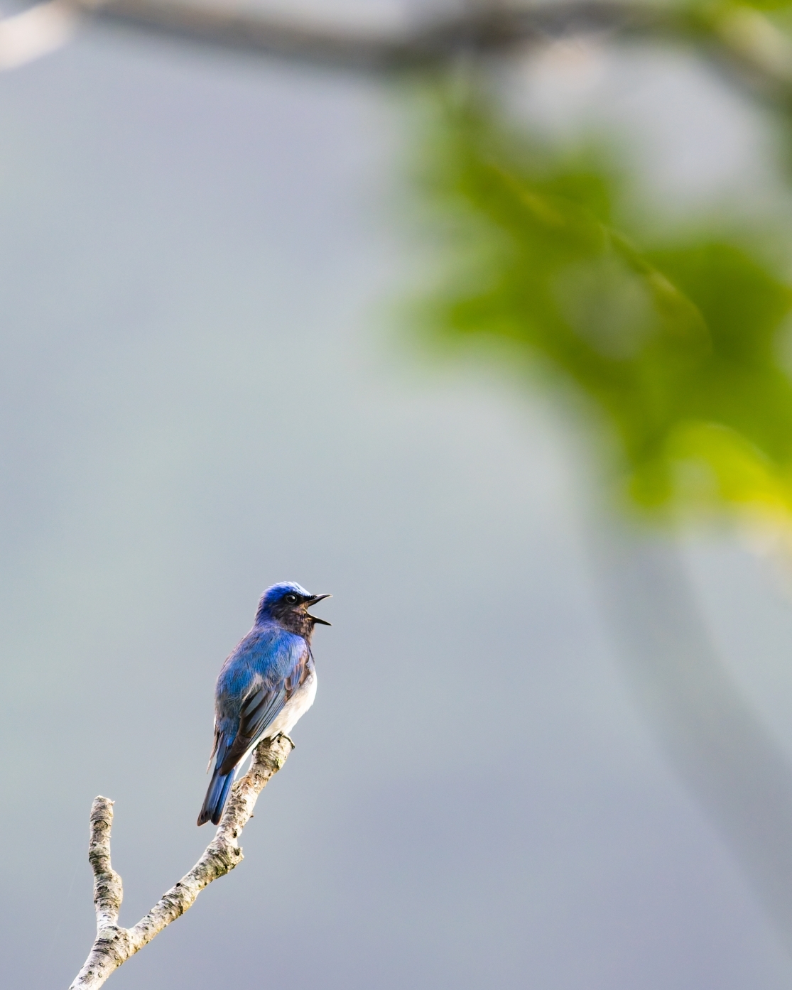 (朝日に囀るオオルリ)