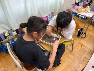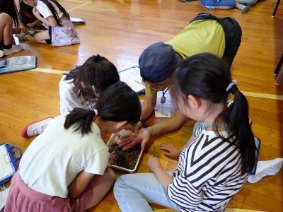 出前講座では、主に二部制で行い、前半は私たちの担当する藤前干潟をわかり易くスライドで説明する学びの時間にしています。後半の時間は、ワークショップとして生き物スケッチや藤前干潟の泥土の中のマイクロプラスチックの分別作業を体験していただいております。