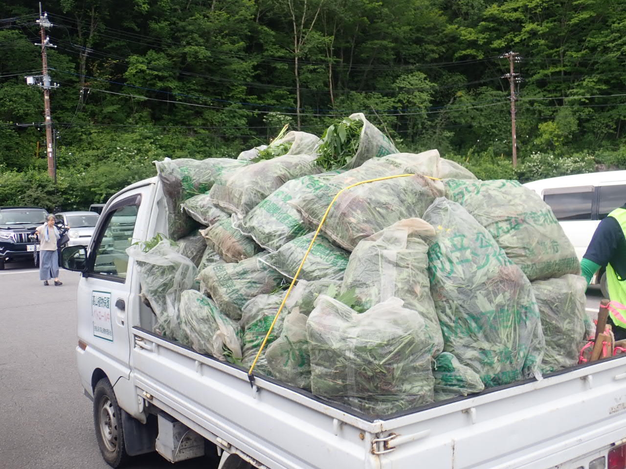軽トラックいっぱいになりました。(330キロ!)多くの方にご協力いただき、たくさんのオオハンゴンソウの駆除を行うことができました。ありがとうございました。(飯島)