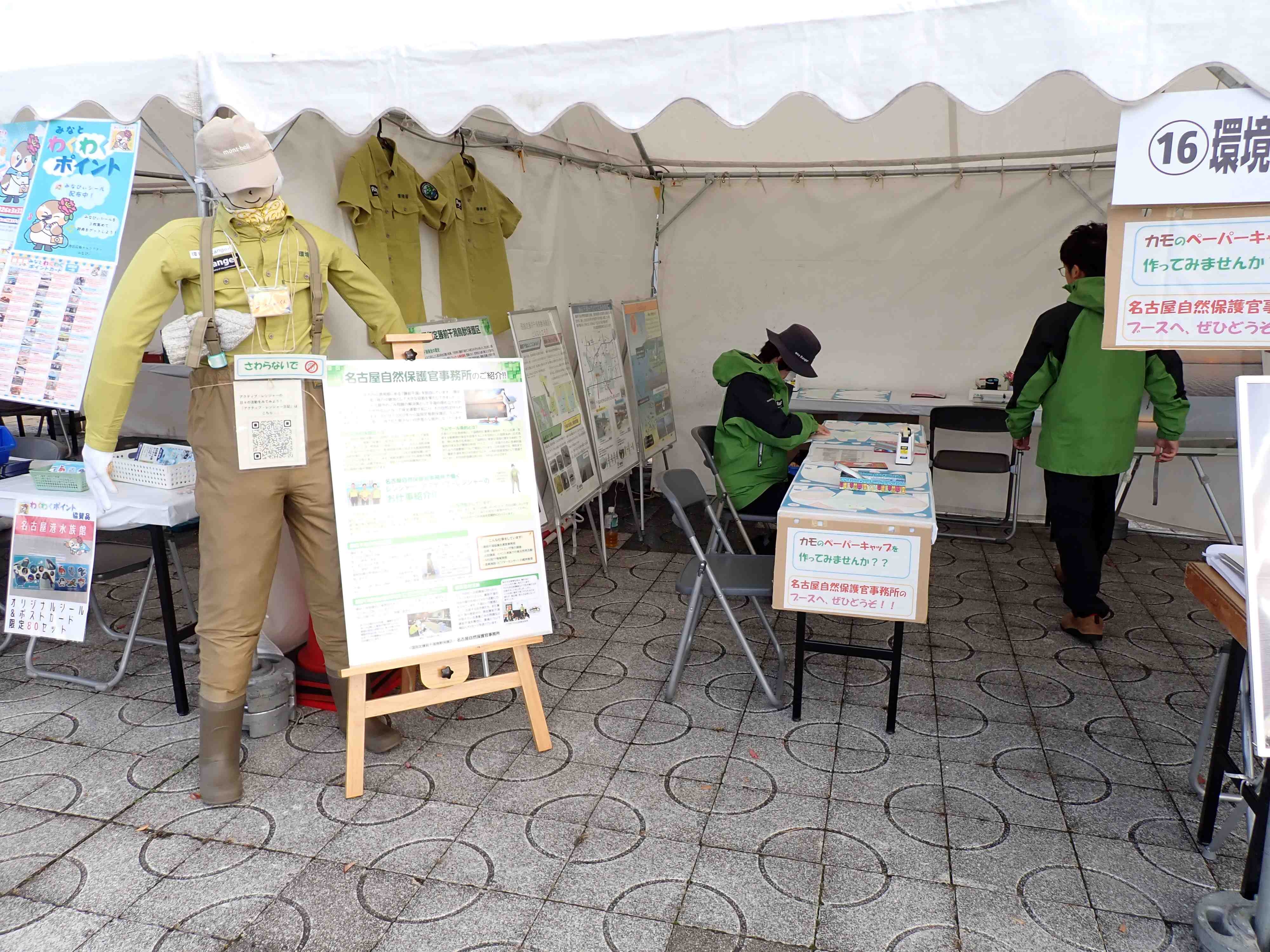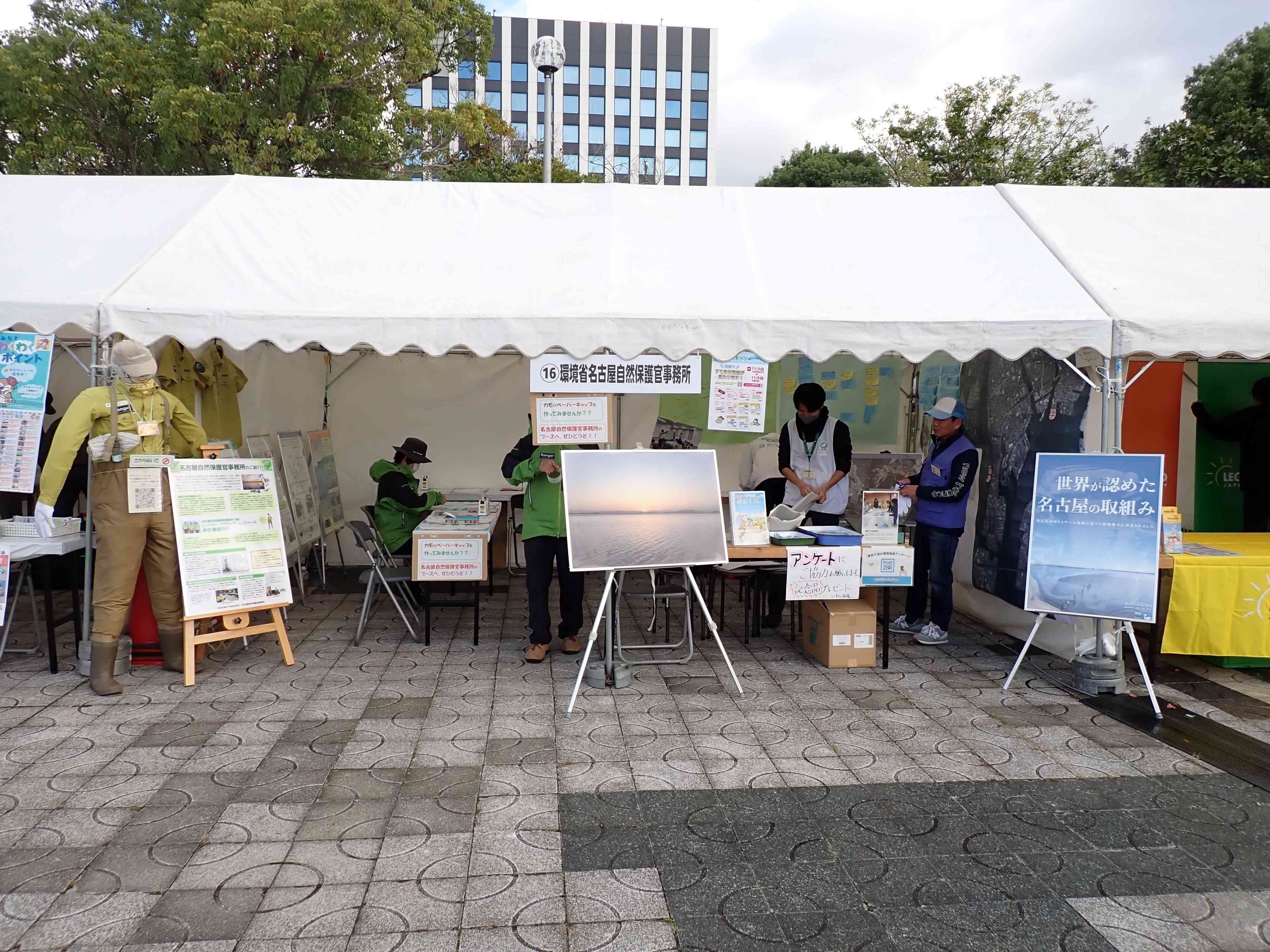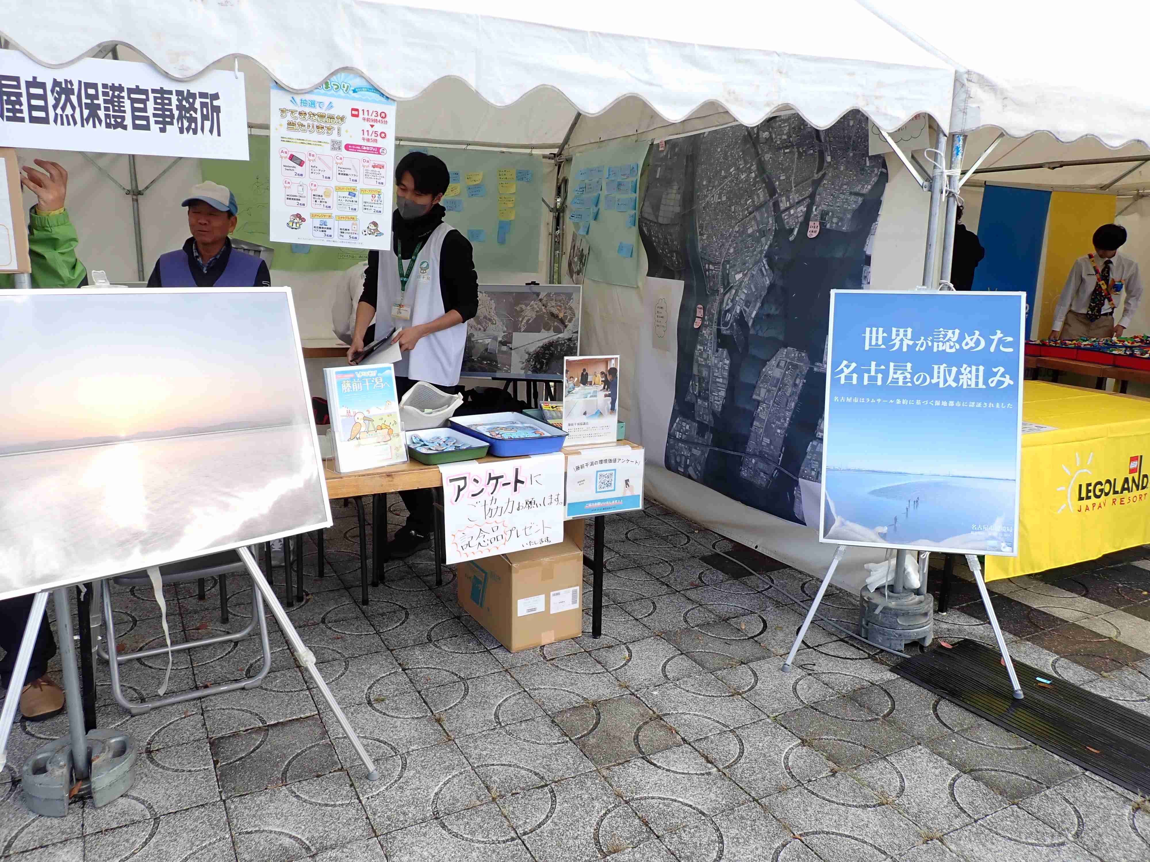 ブースは環境省にて1区画借り、半分を名古屋自然保護官事務所、もう半分は「藤前干潟協議会」名にて名古屋市環境局さまに藤前干潟の展示、アンケートの実施にご使用いただきました。