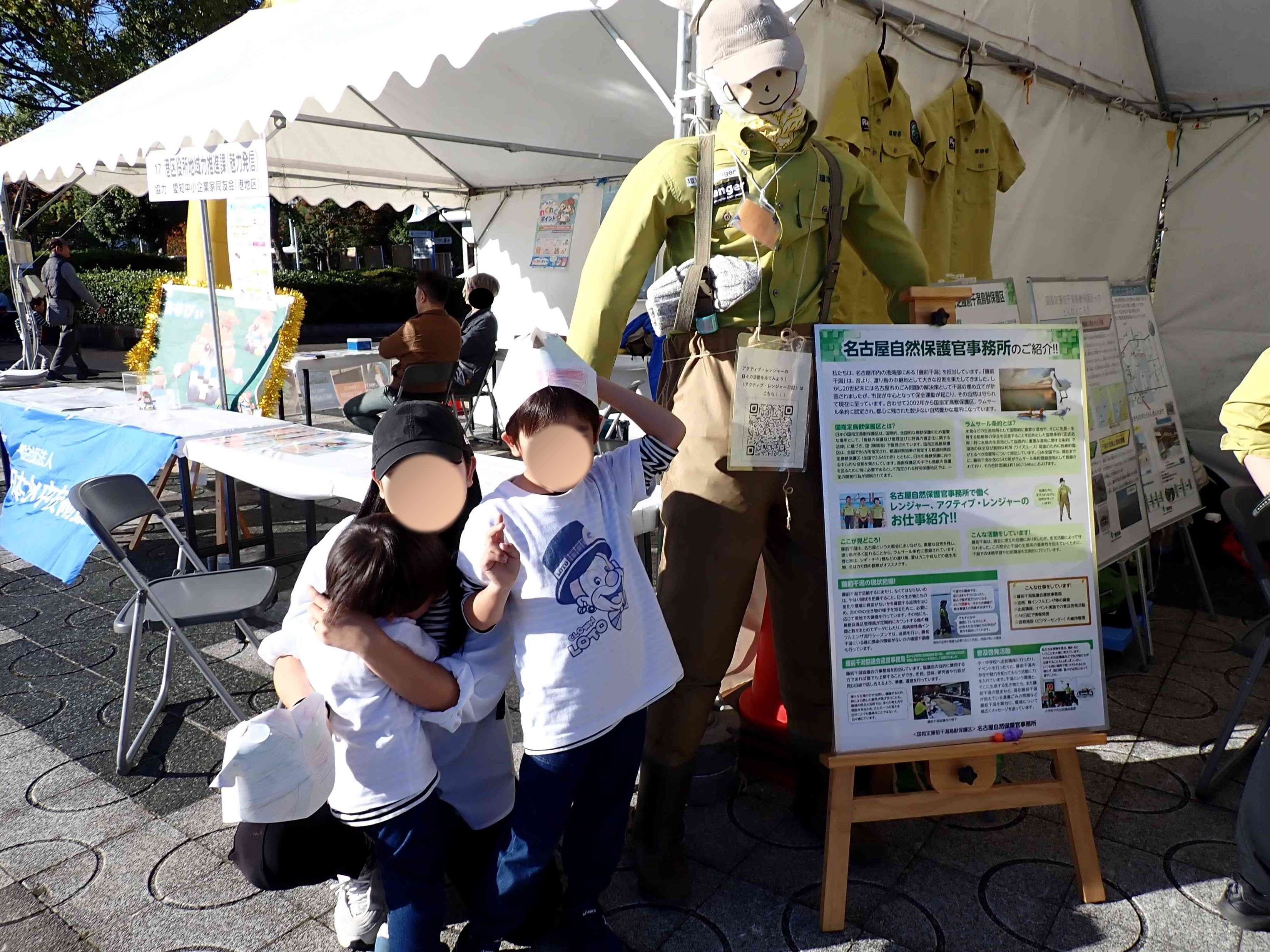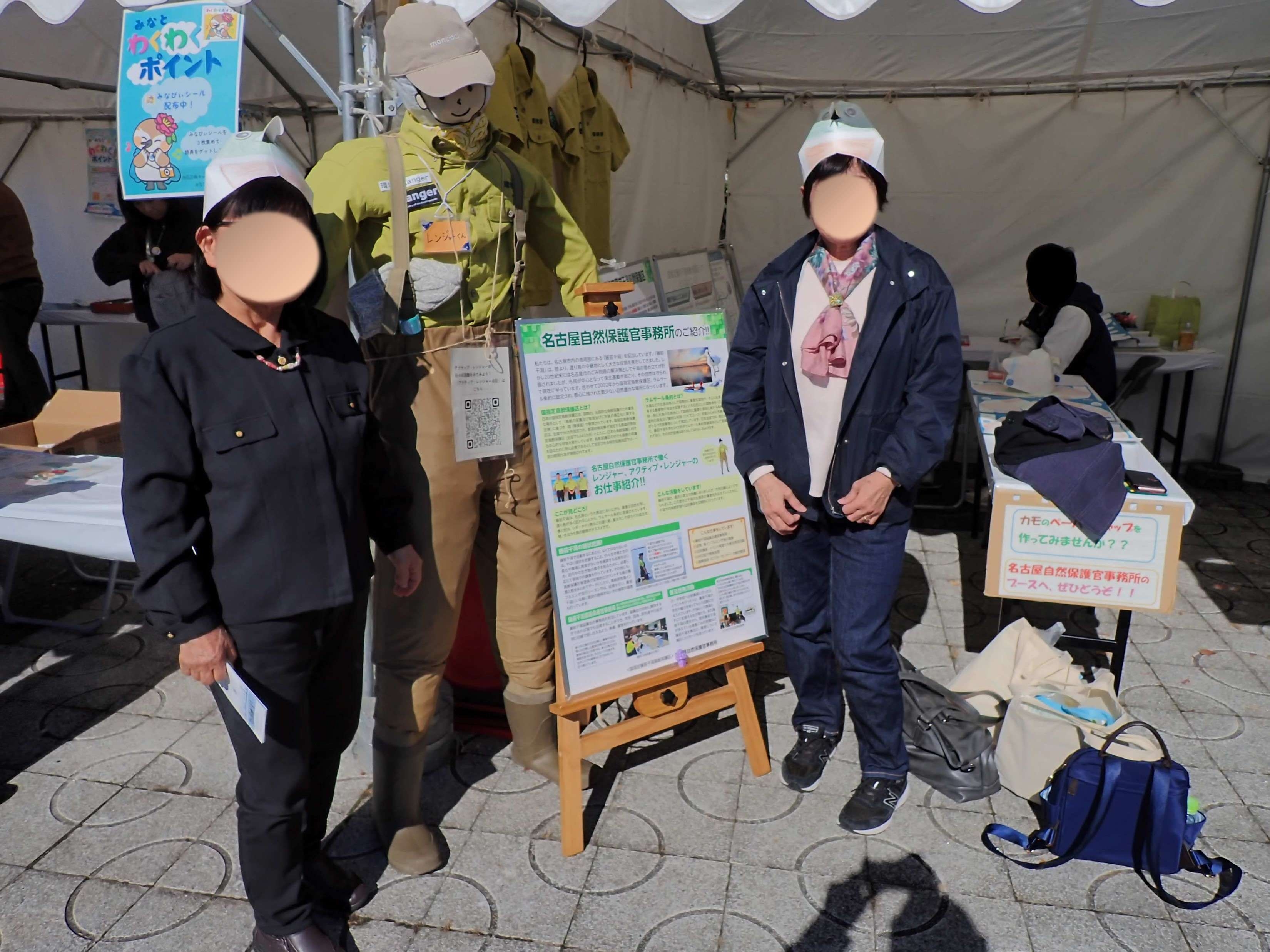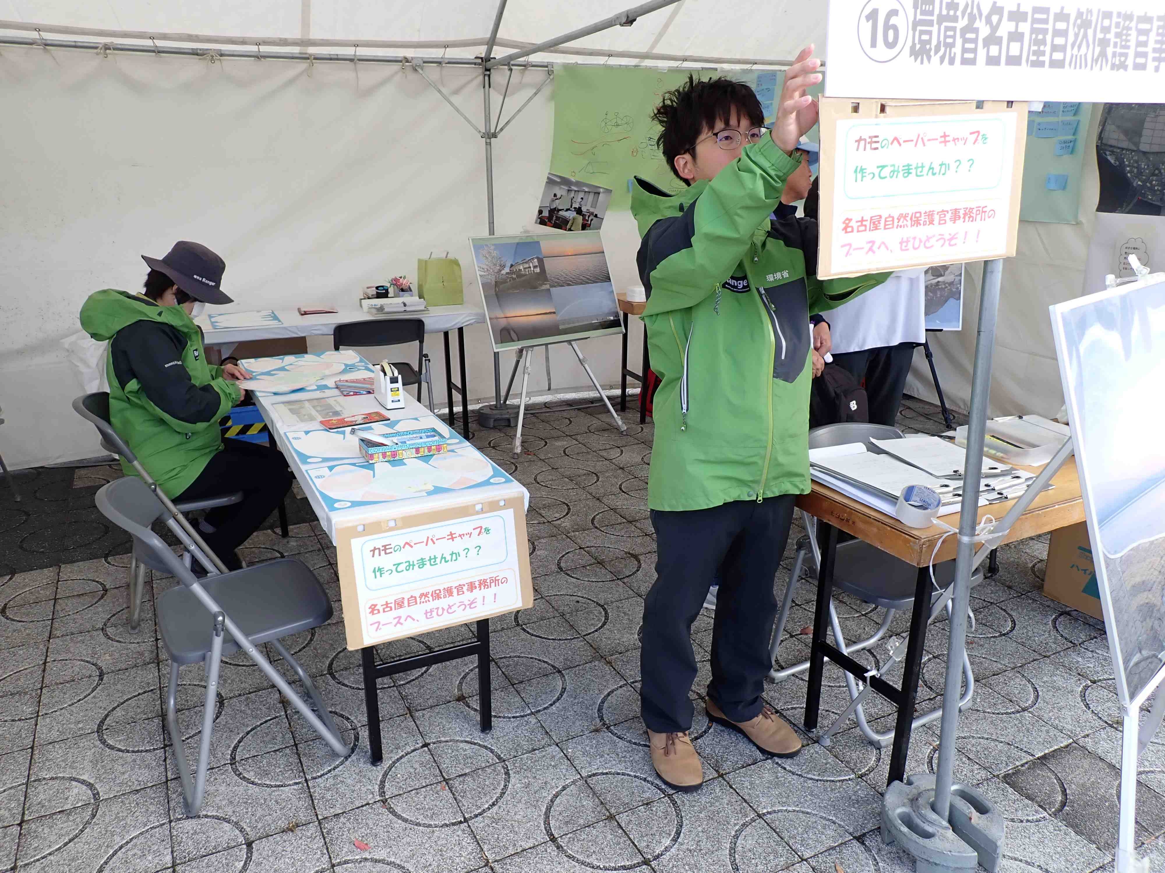 ブースは環境省にて1区画借り、半分を名古屋自然保護官事務所、もう半分は「藤前干潟協議会」名にて名古屋市環境局さまに藤前干潟の展示、アンケートの実施にご使用いただきました。