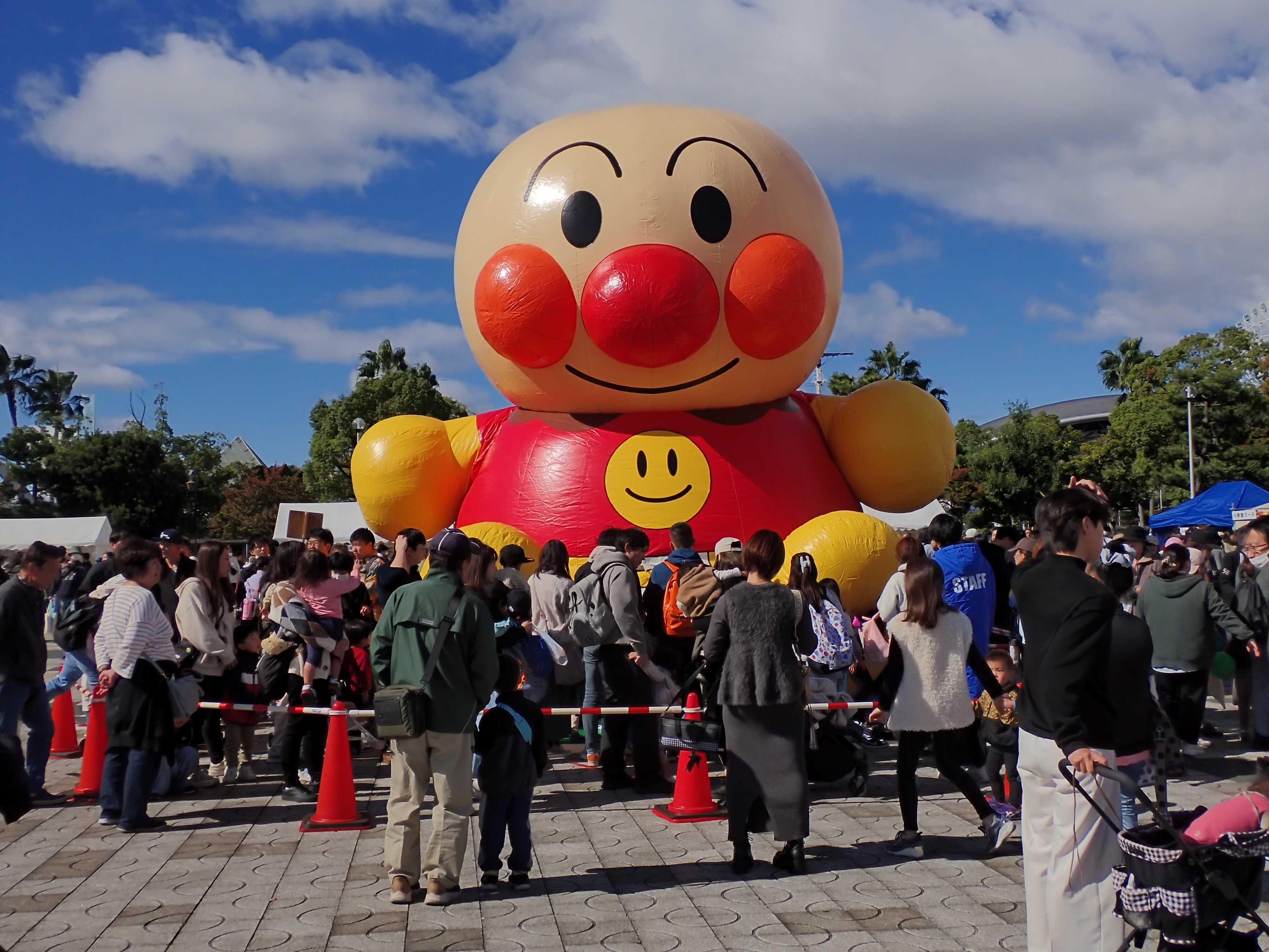 朝の準備の時には、公園内は閑散としていたのにも関わらず、祭りが開催されると驚くほどの人が押し寄せました。アンパンマンへも人がどっと押し寄せ、気付けば入場制限がかかるほどいっぱいになっていました。