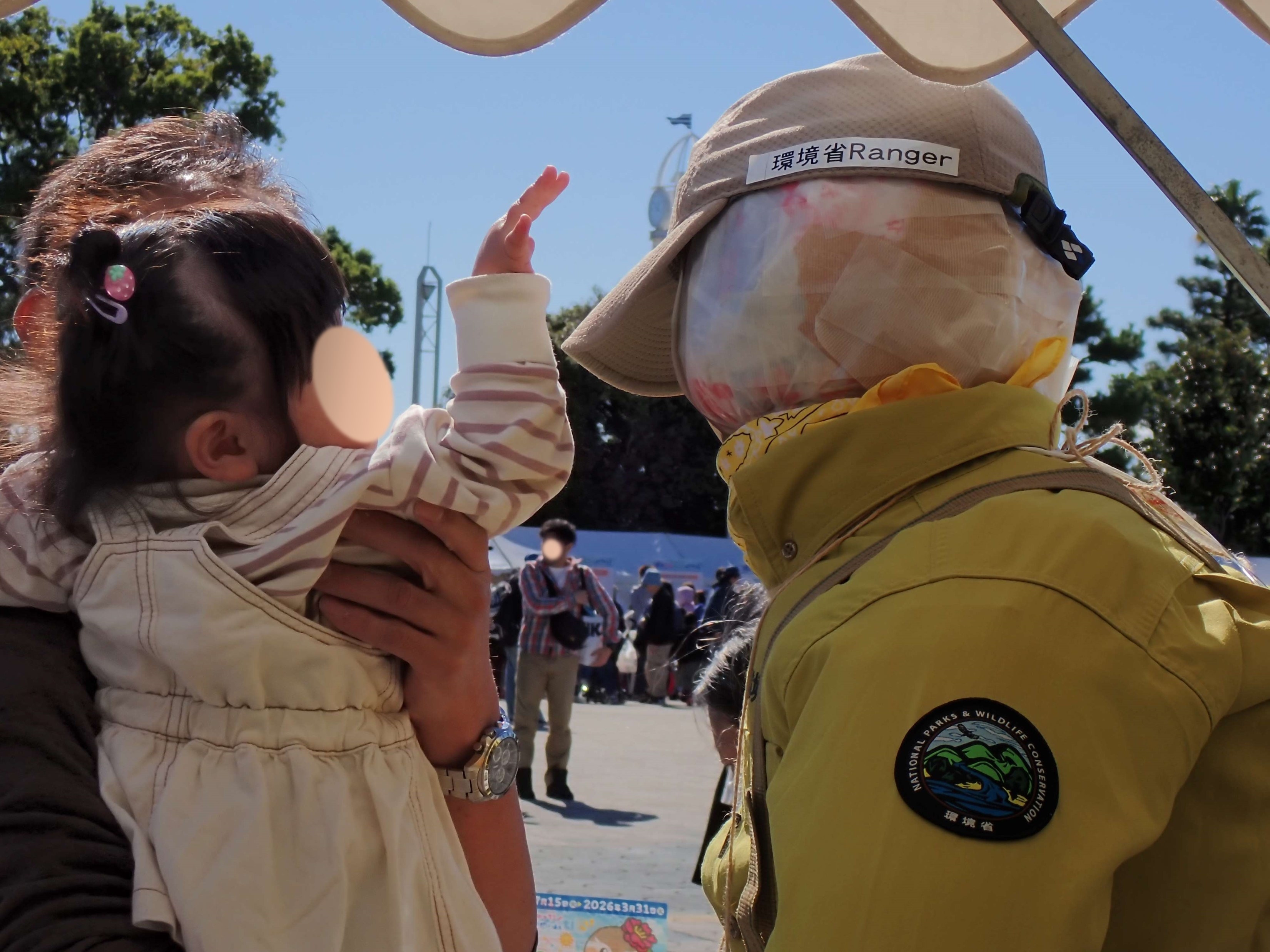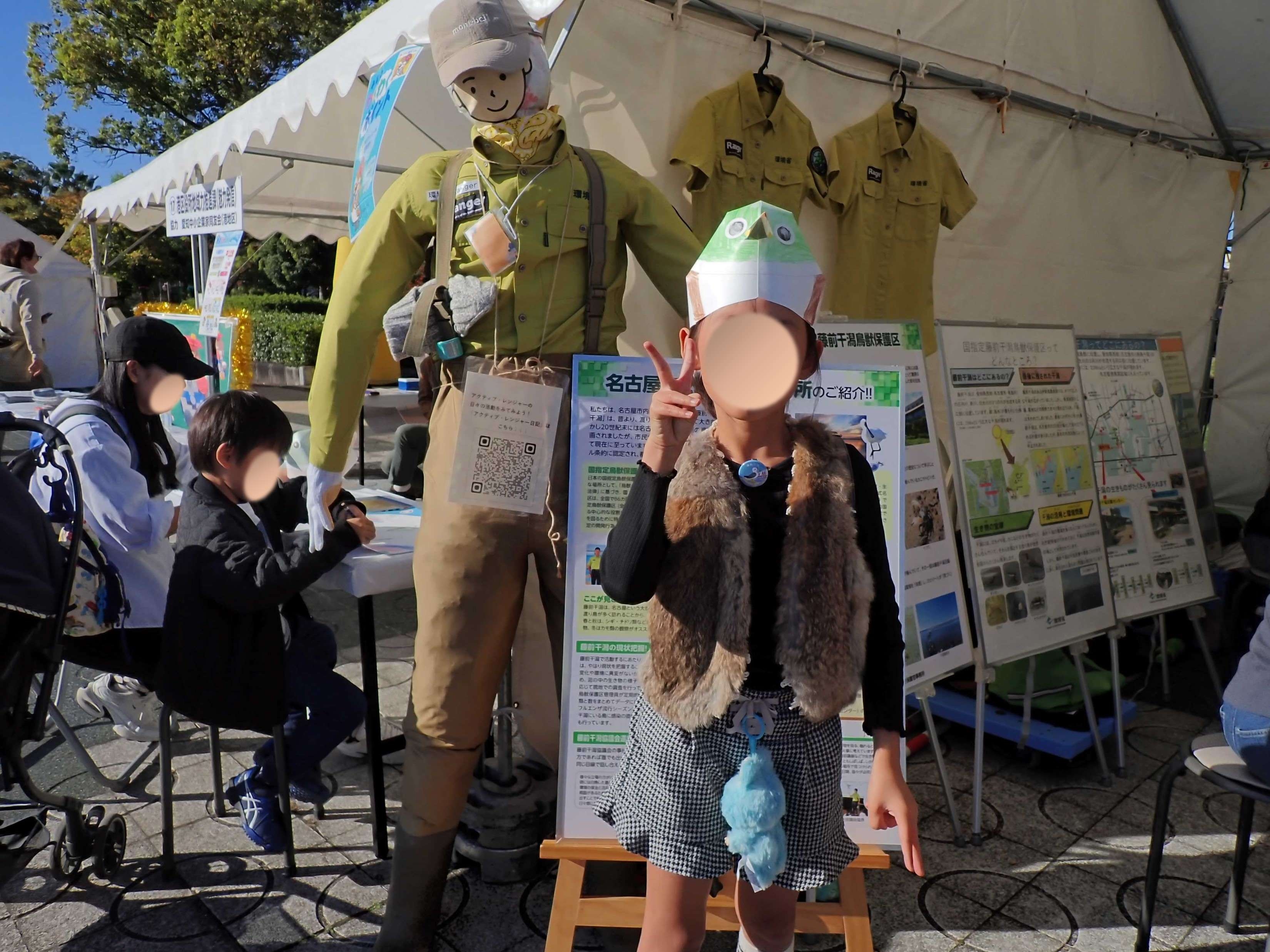 関係先の方からお話があり、名古屋自然保護官事務所のマスコットに「レンジャー君」なるものを作成したところ、彼は結構活躍してくれます。作ったこちらも最初はレンジャー君1号に始まり2号、現在はなんと3号モデルになります。2号モデルからは自立できるようになり、事務所に置いておくと不審者と間違われた等、笑い話もありましたが、改良を加えた現在の3号モデルでは、自立に加え、腕っぷしが太くなり、より愛されるマスコットになったように感じます。おかげで子供にも人気です。またどこかでお会いしたら「レンジャー君!」とお声かけください。